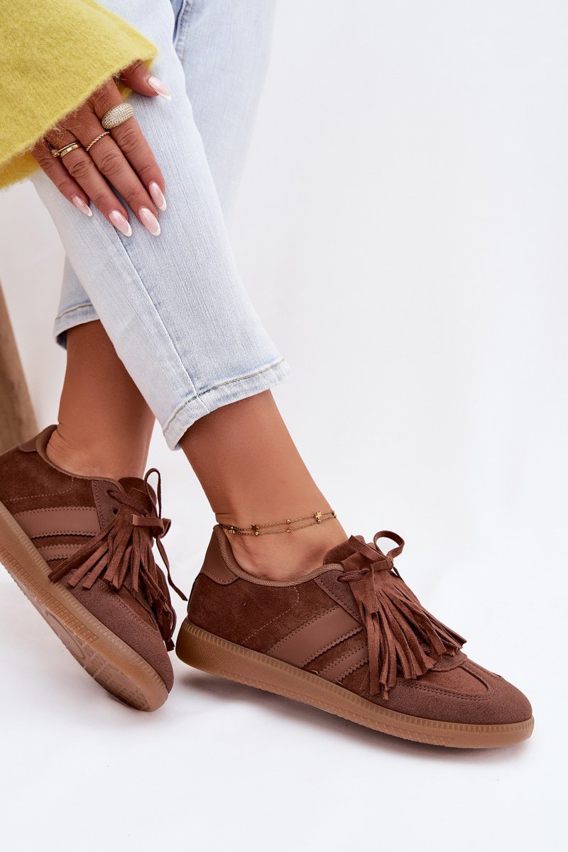 Stilīgi sieviešu sporta apavi ar videi draudzīgu zamšādu ir oriģināla izvēle sievietēm, kas novērtē modernu izskatu un komfortu. Apavi ir dekorēti ar dekoratīviem kniedēm priekšpusē, kuras var viegli noņemt, piešķirot modelim daudzpusīgu raksturu. Mīksta putu zole, kas papildus pārklāta ar audumu, nodrošina komfortu visas dienas garumā. Šie sporta apavi ir ideāli piemēroti ikdienas pilsētas izskatam. Izvēloties izmēru, skatieties izmēru tabulu.