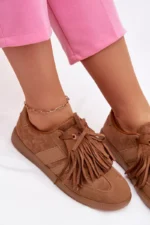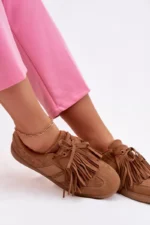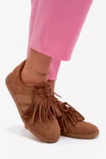 Stilīgi sieviešu sporta apavi ar videi draudzīgu zamšādu ir oriģināla izvēle sievietēm, kas novērtē modernu izskatu un komfortu. Apavi ir dekorēti ar dekoratīviem kniedēm priekšpusē, kuras var viegli noņemt, piešķirot modelim daudzpusīgu raksturu. Mīksta putu zole, kas papildus pārklāta ar audumu, nodrošina komfortu visas dienas garumā. Šie sporta apavi ir ideāli piemēroti ikdienas pilsētas izskatam. Izvēloties izmēru, skatieties izmēru tabulu.
