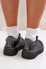 Sieviešu sporta kurpes, izgatavotas no videi draudzīgas ādas. Izgatavotas uz platformas, kas nodrošina nelielu augstumu un garantē komfortu ejot. Klasiskās auklas nodrošina perfektu pielāgošanos. Šī modeļa unikāla priekšrocība ir jaukie lentiņas, kas piešķir oriģinalitāti un meitenīgu šarmu. Šis modelis ir ideāli piemērots gan ikdienas, gan brīvā laika apģērbam, kļūstot par stilīgu papildinājumu jebkurai garderobei. Izvēloties izmēru, skatieties izmēru tabulu.