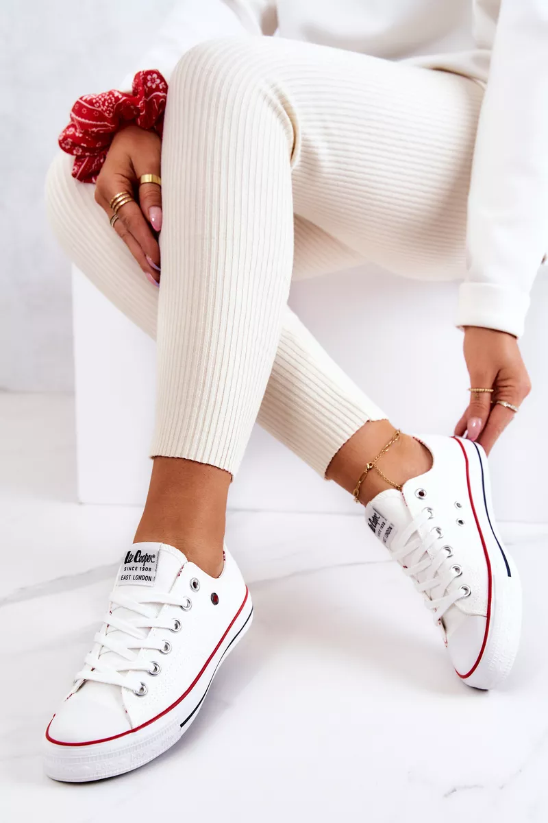 Sieviešu Lee Cooper sporta kurpes. Šis klasiskais modelis lieliski piestāv džinsiem, bet arī brīvām kleitām. Kurpēm ir mīksta auduma zole un neslīdoša apakšdaļa. Aizšņorējams modelis. Pastiprināts purngals. Noteikti apskatiet visu mūsu Lee Cooper apavu kolekciju. Izvēloties savu izmēru, izmantojiet izmēru tabulu.