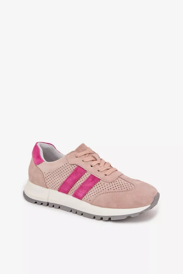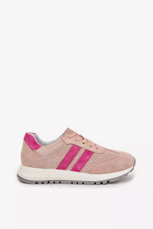 Sieviešu sporta kurpes no dabiskas zamšādas apvieno komfortu un nemirstīgu stilu. Divas strīpas sānos uzsver to modernu, sportisko raksturu. Mīkstā ādas odere nodrošina komfortu pat pēc ilgstošas valkāšanas. Šie sporta apavi ir lieliska izvēle ikdienas valkāšanai, tie labi sader ar džinsiem un auduma biksēm, radot stilīgas kombinācijas. Izvēloties savu izmēru, lūdzu, izmantojiet izmēru tabulu.
