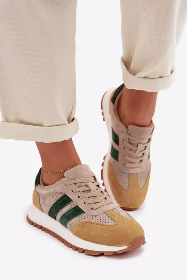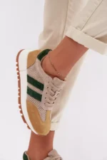 Sieviešu sporta kurpes no dabiskas zamšādas apvieno komfortu un nemirstīgu stilu. Divas strīpas sānos uzsver to modernu, sportisko raksturu. Mīkstā ādas odere nodrošina komfortu pat pēc ilgstošas valkāšanas. Šie sporta apavi ir lieliska izvēle ikdienas valkāšanai, tie labi sader ar džinsiem un auduma biksēm, radot stilīgas kombinācijas. Izvēloties savu izmēru, lūdzu, izmantojiet izmēru tabulu.