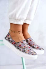 Šie sporta apavi ar potītes augstumu ir ar interesantu rakstu, kas ir ideāli piemērots gaidāmajai pavasara un vasaras sezonai. Tie ir uzstādīti uz masīvas platformas ar apaļu purngalu. Slip-on modelis. Izgatavoti no augstas kvalitātes tekstilmateriāla. Tie lieliski izskatīsies ar daudziem stiliem – plašām kleitām vai biksēm. Tiem ir Memory Foam System zolīte, kas atceras jūsu pēdas formu, ideāli pielāgojas, absorbē triecienus, ir izturīga pret deformācijām, ļauj mitrumam iztvaikot un regulē temperatūru. Izvēloties izmēru, skatieties izmēru tabulu.