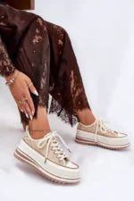 Sieviešu sporta apavi, izgatavoti no tekstilmateriāla. Uz biezās platformas, kas padara siluetu slaidāku. Modelim ir biezākas auklas, kas piešķir tam unikālu raksturu. Mīkstā zole nodrošina komfortu un amortizāciju katrā solī. Šie sporta apavi ir ideāli piemēroti ikdienas stilam, piedāvājot gan stilu, gan funkcionalitāti. Izvēloties izmēru, lūdzu, izmantojiet izmēru tabulu.