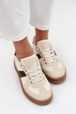 Sieviešu ekoloģiskie ādas sporta apavi ir moderns un ērts izvēle ikdienas valkāšanai. Tie ir aprīkoti ar gumijas platformas zoli, kas nodrošina labu saķeri un ērtu staigāšanu. Klasiskās auklas ļauj apaviem ērti piekļauties kājai. Šī modeļa zole ir izgatavota no putuplasta, kas ir pārklāts ar audumu. Apaļi purngali. Ideāli piemēroti ikdienas izbraucieniem. Izvēloties izmēru, skatieties izmēru tabulu.