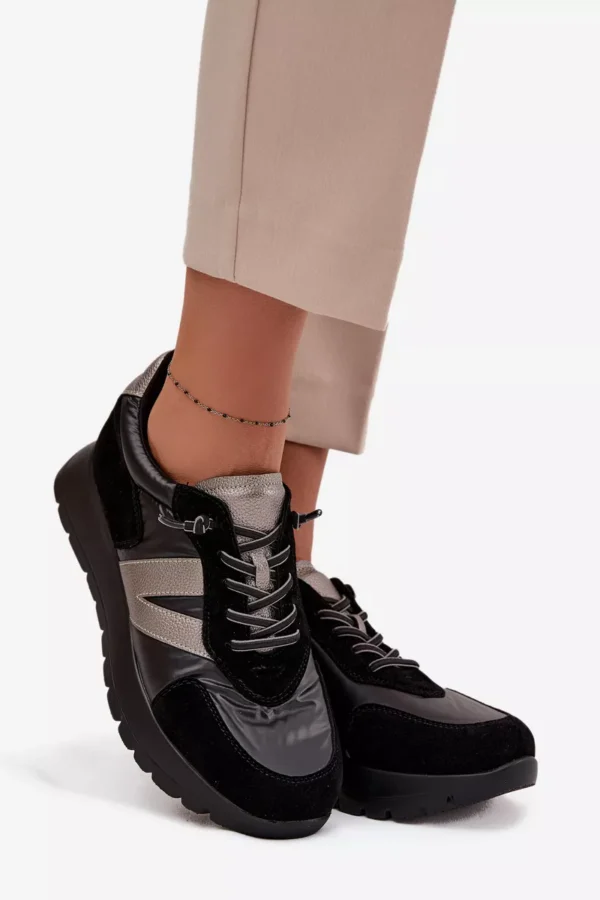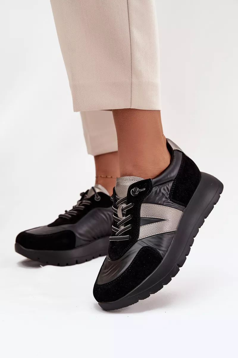 Sieviešu sporta apavi Vinceza. Izgatavoti no videi draudzīgas ādas, videi draudzīga zamšāda un gluda tekstilmateriāla kombinācijas, tie izskatās ļoti moderni un piesaista uzmanību ar interesanto tekstūru kombināciju. Uz platformas, tie piešķir dažus centimetrus jūsu augumam, vienlaikus saglabājot komfortu ikdienas valkāšanai. Šim modelim ir elastīgas auklas, kas imitē šņores. Ādas zole nodrošina lielisku komfortu un ērtības valkāšanā. Šie sporta apavi ir ideāli piemēroti gan ikdienas stilam, gan sportiskākam izskatam, piešķirot tiem raksturu un svaigumu. Lūdzu, izvēloties savu izmēru, skatieties izmēru tabulu. Lūdzu, izvēloties savu izmēru, skatieties izmēru tabulu.