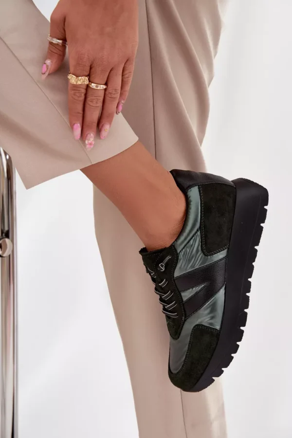 Sieviešu sporta apavi Vinceza. Izgatavoti no videi draudzīgas ādas, videi draudzīga zamšāda un gluda tekstilmateriāla kombinācijas, tie izskatās ļoti moderni un piesaista uzmanību ar interesanto tekstūru kombināciju. Uz platformas, tie piešķir dažus centimetrus jūsu augumam, vienlaikus saglabājot komfortu ikdienas valkāšanai. Šim modelim ir elastīgas auklas, kas imitē šņores. Ādas zole nodrošina lielisku komfortu un ērtības valkāšanā. Šie sporta apavi ir ideāli piemēroti gan ikdienas stilam, gan sportiskākam izskatam, piešķirot tiem raksturu un svaigumu. Lūdzu, izvēloties savu izmēru, skatieties izmēru tabulu. Lūdzu, izvēloties savu izmēru, skatieties izmēru tabulu.