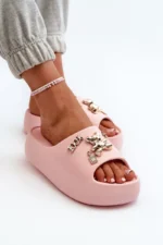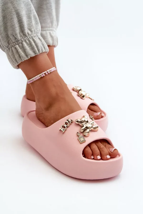 Sieviešu vieglās putu plastmasas čības ar rozā rotājumiem Orchia