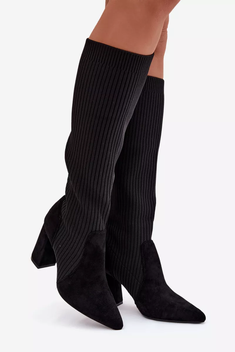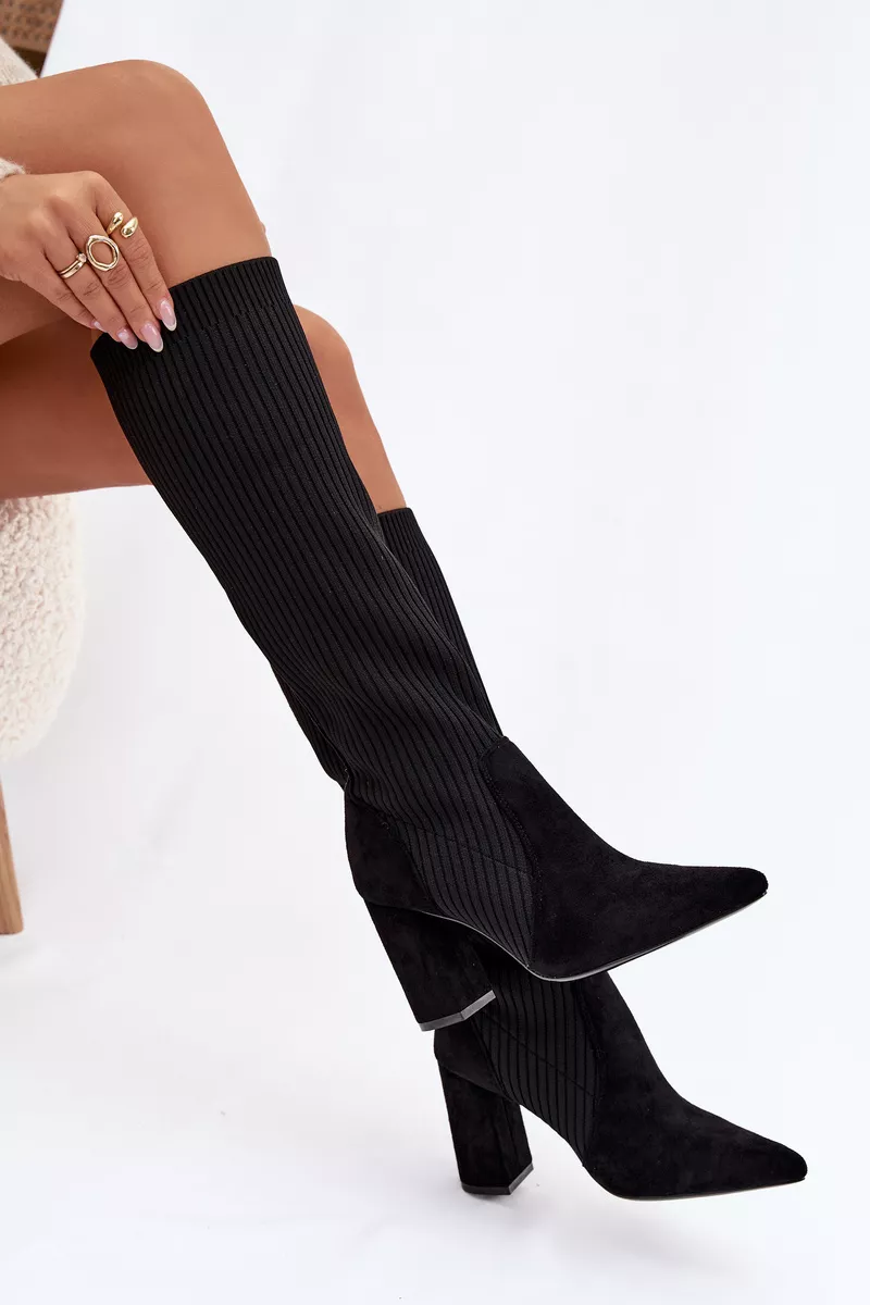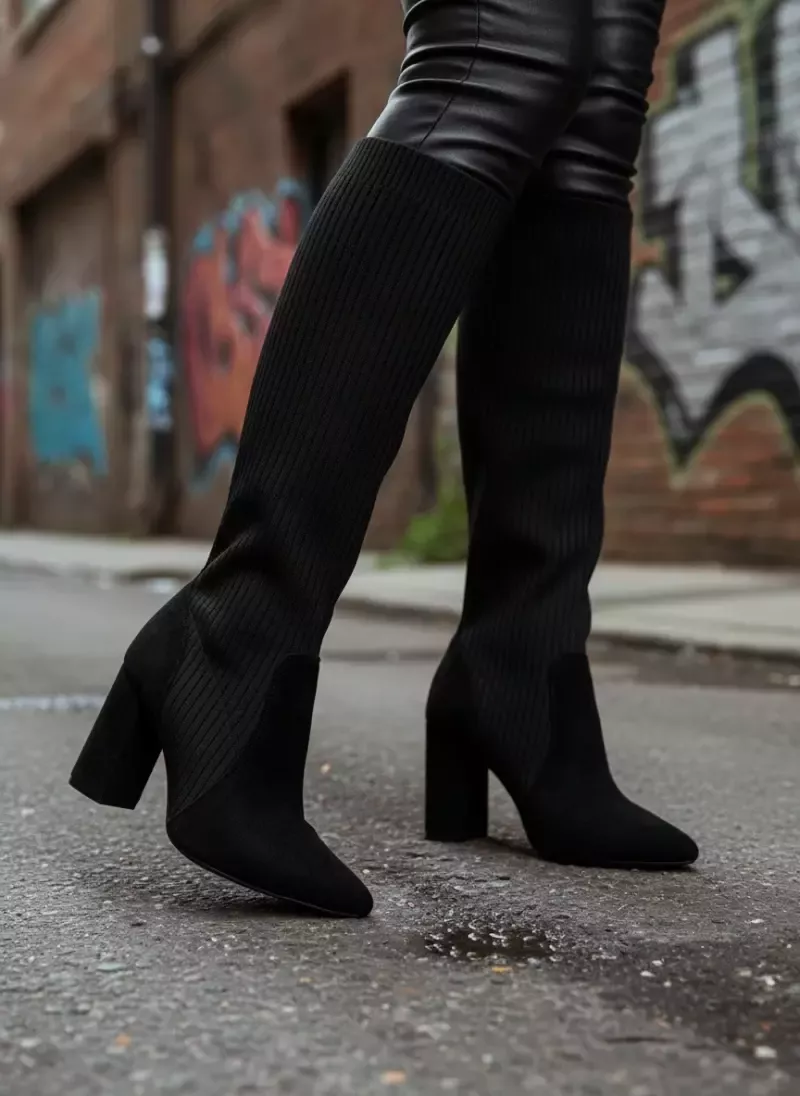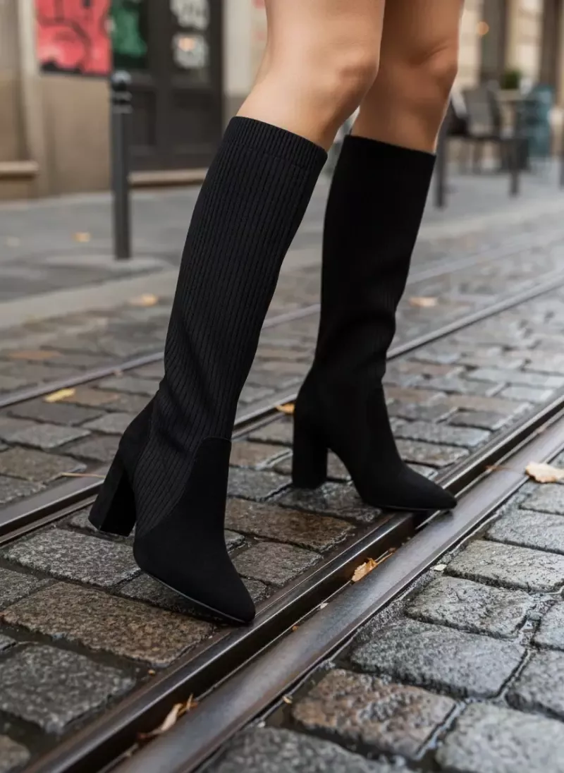 Sieviešu potītes zābaki ar elastīgu auduma apdari, kas atgādina zeķes, ir moderns un sievišķīgs risinājums daudziem gadījumiem. To slip-on siluets ideāli pielāgojas kājai, uzsverot tās formu. Smaile purngals piešķir eleganci un padara siluetu slaidāku. Šis ir ideāls modelis, kas piestāv svārkiem un kleitām, piešķirot visam apģērbam modernu raksturu. Izvēloties izmēru, skatieties izmēru tabulu.