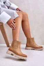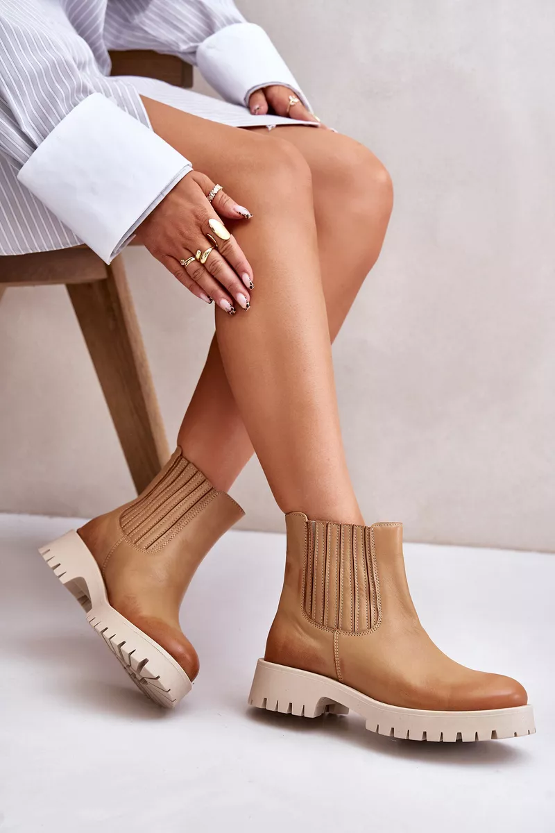 Šie sieviešu dabīgās ādas zābaki apvieno klasisku stilu un komfortu. Ar plakanu papēdi tie nodrošina komfortu visas dienas garumā. Elastīgi sānu ieliktņi atvieglo to uzvilkšanu un novilkšanu. Noapaļoti purngali. Šie zābaki ir lieliska izvēle ikdienas valkāšanai, apvienojot funkcionalitāti ar modernu izskatu. Izvēloties izmēru, lūdzu, izmantojiet izmēru tabulu.