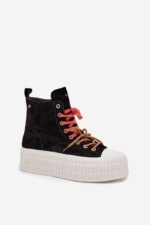 GOE sieviešu apsildāmie sporta apavi ir stilīgi apavi, kas ir ideāli piemēroti aukstākām dienām. Tie ir izgatavoti no augstas kvalitātes dabiskas zamšādas, izskatās moderni un eleganti, vienlaikus nodrošinot izturību un komfortu. Tās ir pastiprinātas ar biezu platformu, kas piešķir augstumu un uzsver apavu modernu raksturu. To izteiksmīgais izskats ir panākts ar dubultu, divpakāpju auklējumu, kas piešķir oriģinālu akcentu un piesaista uzmanību. Šis modelis ir ideāls sievietēm, kas ikdienas apģērbā novērtē komfortu, urbāno stilu un modernus akcentus. Izvēloties izmēru, lūdzu, izmantojiet izmēru tabulu.