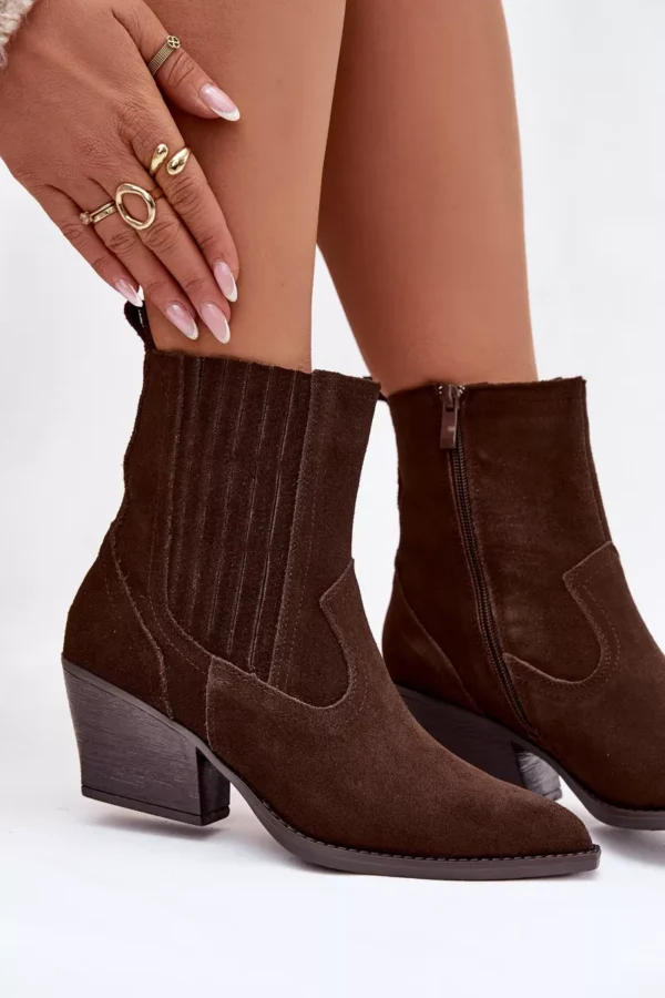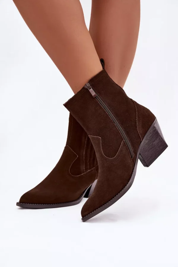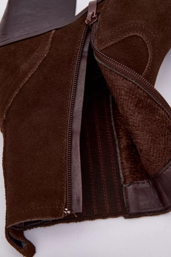 Sieviešu kovboju zābaki no dabiskas zamšādas ir unikāls piedāvājums, kas apvieno stilu un komfortu. Smailei formas purngali piešķir tiem izteiksmīgu izskatu, bet odere nodrošina siltumu vēsākās dienās. Rāvējslēdzējs atvieglo to uzvilkšanu, bet blokveida papēdis nodrošina stabilitāti un komfortu ejot. Šie zābaki ir ideāli piemēroti ikdienas stilam un piešķirs unikālu akcentu jebkuram izskatam. Lūdzu, izvēloties savu izmēru, skatieties izmēru tabulu. Lūdzu, izvēloties savu izmēru, skatieties izmēru tabulu.