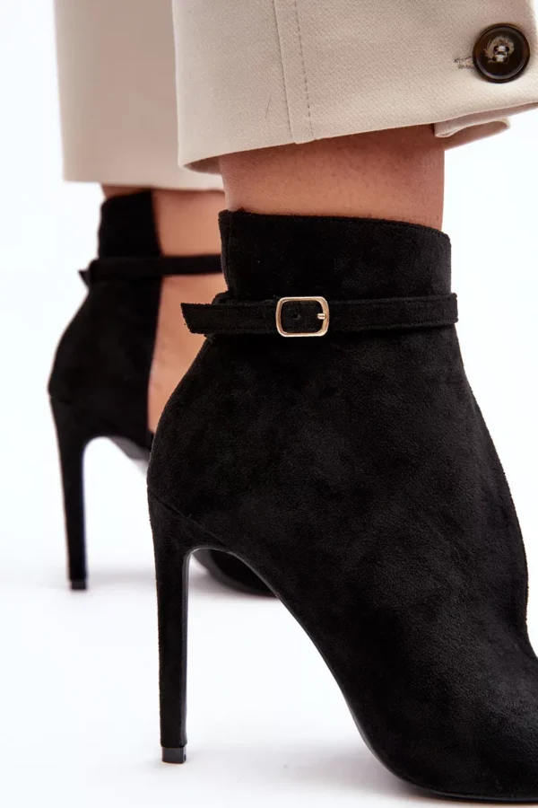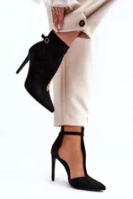 Šie elegantie sieviešu zābaki ir izgatavoti no videi draudzīga zamšāda. Modelis, kas veidots uz stiletto papēža ar smaili purngalu, lieliski izceļ kājas. Zābaki tiek aizdarīti ar rāvējslēdzēju sānos. Šo zābaku purngals ir stingrs. Šis modelis labi sader ar daudziem stiliem, piemēram, kleitām, svārkiem vai biksēm. Šie zābaki ir obligāts elements jūsu garderobē! Izvēloties savu izmēru, lūdzu, izmantojiet izmēru tabulu.