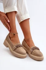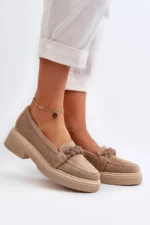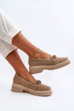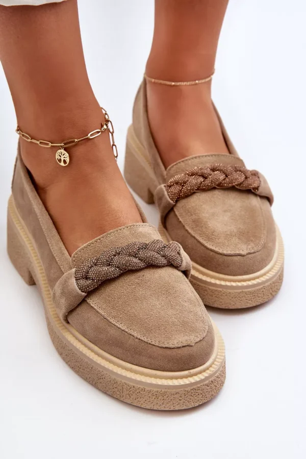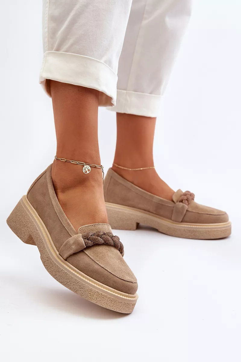 Burvīgi sieviešu mokasīni no dabīgās zamšādas. Tie ir ar plakanu papēdi un nelielu platformu, kas nodrošina stabilitāti un komfortu valkājot. Noapaļotie purngali piešķir tiem smalku šarmu. Profilēta zole garantē komfortu lietošanas laikā. Mazie cirkonija akmentiņi uz siksnas priekšpuses piešķir papildu eleganci. Tie noteikti ir jāiekļauj tavā pavasara garderobē! Izvēloties izmēru, lūdzu, skaties izmēru tabulu.