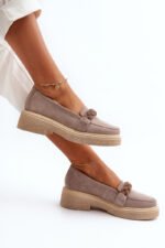 Burvīgi sieviešu mokasīni no dabīgās zamšādas. Tie ir ar plakanu papēdi un nelielu platformu, kas nodrošina stabilitāti un komfortu valkājot. Noapaļotie purngali piešķir tiem smalku šarmu. Profilēta zole garantē komfortu lietošanas laikā. Mazie cirkonija akmentiņi uz siksnas priekšpuses piešķir papildu eleganci. Tie noteikti ir jāiekļauj tavā pavasara garderobē! Izvēloties izmēru, lūdzu, skaties izmēru tabulu.