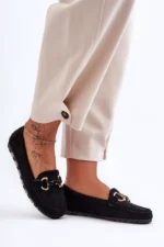 Klasiskie sieviešu mokasīni ir izgatavoti no videi draudzīga zamšāda. Šie apavi ir ar plakanu papēdi. Priekšpusē ir plastmasas apdare. Mīkstā, nedaudz perforētā zole padara apavus ērti valkājamos. Modelim ir apaļs purngals. Pateicoties savai daudzpusībai, tie ir ideāli piemēroti pavasara-rudens sezonai! Izvēloties izmēru, skatieties izmēru tabulu.