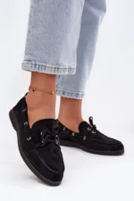 Šie sieviešu ekoloģiskie zamšādas mokasīni ir ērta un stilīga izvēle ikdienas valkāšanai. Tie ir ar plakanu papēdi, kas nodrošina komfortu, bet noapaļotie purngali piešķir tiem maigu raksturu. Interesants akcents ir plānais siksniņa priekšā un ap papēdi, kas subtili uzsver eleganto un laikmetīgo izskatu. Izvēloties izmēru, lūdzu, izmantojiet izmēru tabulu. Izvēloties izmēru, lūdzu, izmantojiet izmēru tabulu.