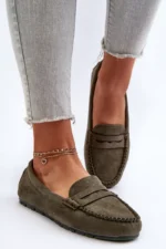 Sieviešu mokasīni no videi draudzīga zamšāda ir klasiski un universāli apavi, kas lieliski papildinās daudzus stila variantus. Priekšējā siksna piešķir apaviem izsmalcinātību un šarmu. To universālais dizains padara tos par ideālu izvēli gan tikšanās ar draugiem, gan formālākām reizēm.