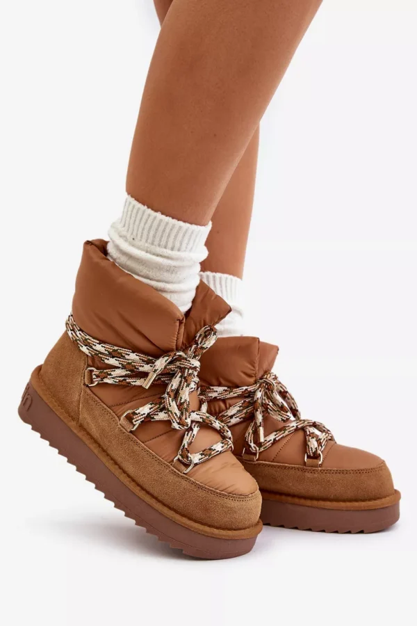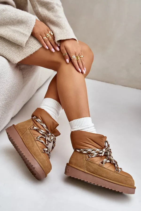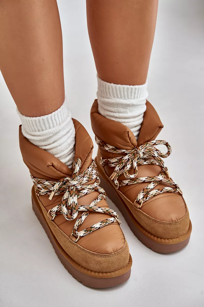 Sieviešu sniega zābaki, kas izgatavoti no augstas kvalitātes sintētiska auduma un dabiskas zamšādas kombinācijas. Ar gumijas zoli. Vienkāršs piegriezums ar sintētisko oderi nodrošina lielisku siltumu. Biezas auklas nodrošina perfektu piegulumu. Tie noteikti ir jāiekļauj jūsu ziemas garderobē! Izvēloties izmēru, skatieties izmēru tabulu.