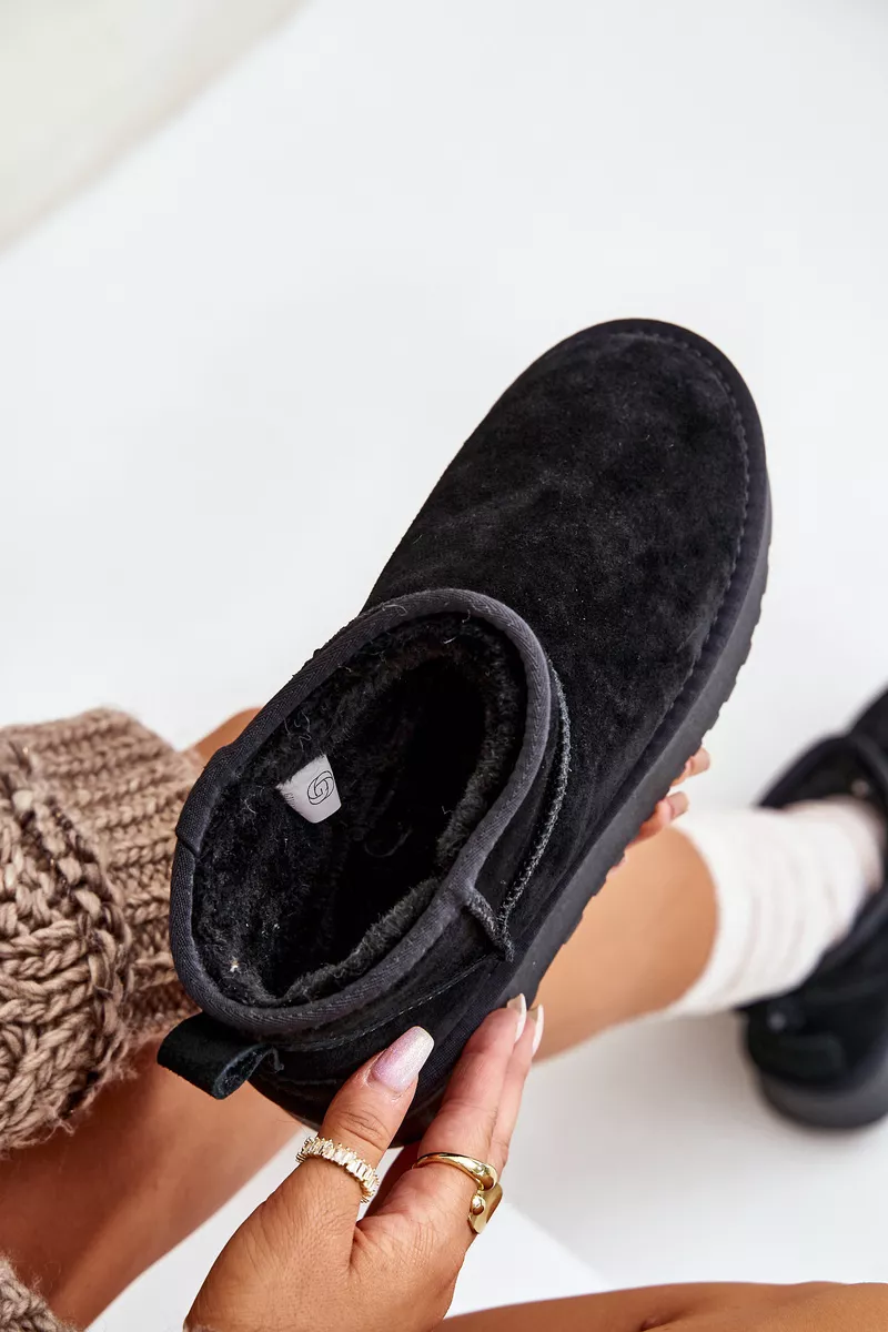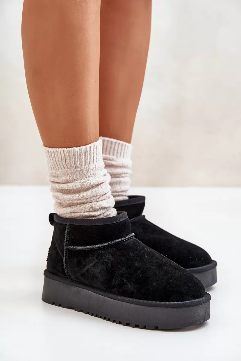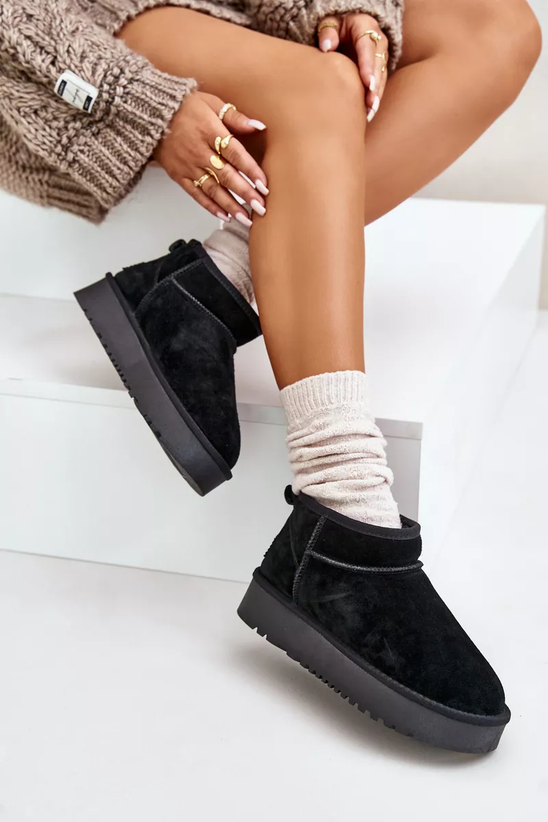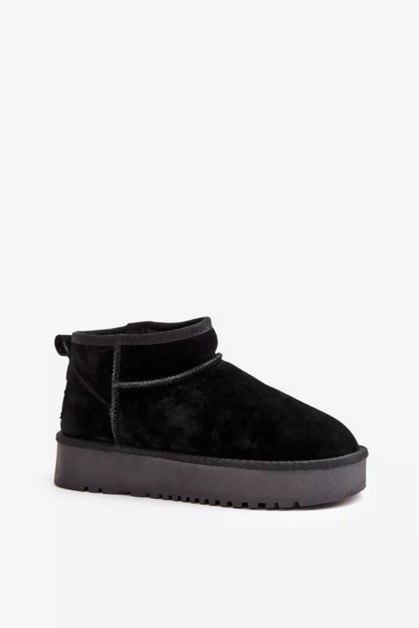 Šie ļoti modernie sniega zābaki ir ideāli piemēroti aukstām dienām. Izgatavoti no dabiskas zamšādas. Zābaku iekšpuse ir izolēta ar biezu kažokādu. Tie ir aprīkoti ar platformas zoli, kas efektīvi izolē no aukstā zemes. Šis modelis ir obligāts jūsu garderobes papildinājums! Izvēloties izmēru, lūdzu, izmantojiet izmēru tabulu.