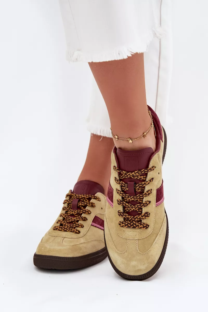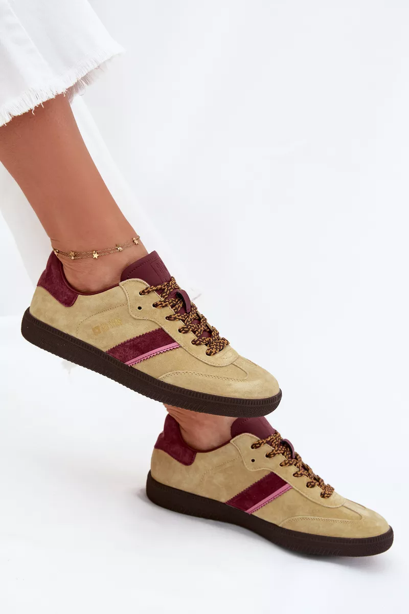 Sieviešu sporta apavi no zīmola Big Star, izgatavoti no augstas kvalitātes dabīgā zamšāda, apvieno stilu un funkcionalitāti. Sānos ir zīmola logotips, kas uzsver to unikālo dizainu. Modelim ir HI-POLY SYSTEM iekšējā zole, kas nodrošina izturību pret nodilumu un deformāciju, garantējot ilgstošu izturību. Turklāt iekšējā daļa lieliski absorbē mitrumu un nodrošina izcilu triecienu absorbciju, padarot apavus ārkārtīgi ērtus un izturīgus vienlaikus, ideālus ikdienas aktivitātēm. Izvēloties izmēru, lūdzu, skatieties izmēru tabulu.