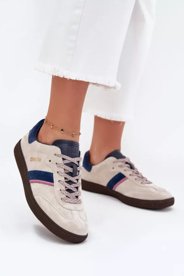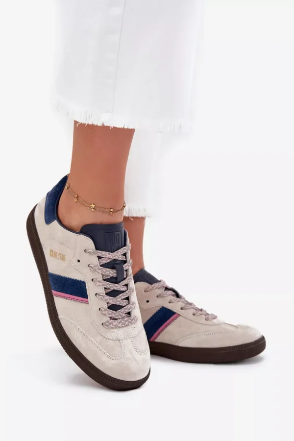 Sieviešu sporta apavi no zīmola Big Star, izgatavoti no augstas kvalitātes dabīgā zamšāda, apvieno stilu un funkcionalitāti. Sānos ir zīmola logotips, kas uzsver to unikālo dizainu. Modelim ir HI-POLY SYSTEM iekšējā zole, kas nodrošina izturību pret nodilumu un deformāciju, garantējot ilgstošu izturību. Turklāt iekšējā daļa lieliski absorbē mitrumu un nodrošina izcilu triecienu absorbciju, padarot apavus ārkārtīgi ērtus un izturīgus vienlaikus, ideālus ikdienas aktivitātēm. Izvēloties izmēru, lūdzu, skatieties izmēru tabulu.