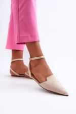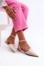 Sieviešu balerīnas no videi draudzīga zamšāda ir eleganta un stilīga izvēle jebkurai dzīves situācijai. Tām ir smaili purngali. Tās tiek aizdarītas ar regulējamu siksnu ar sprādzi un papildu auklām. Klasiskā dizaina un modernu detaļu kombinācija perfekti papildina jebkuru garderobi. Lūdzu, izvēloties savu izmēru, skatieties izmēru tabulu.