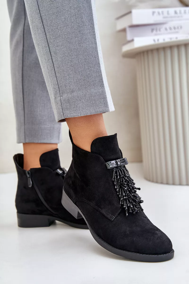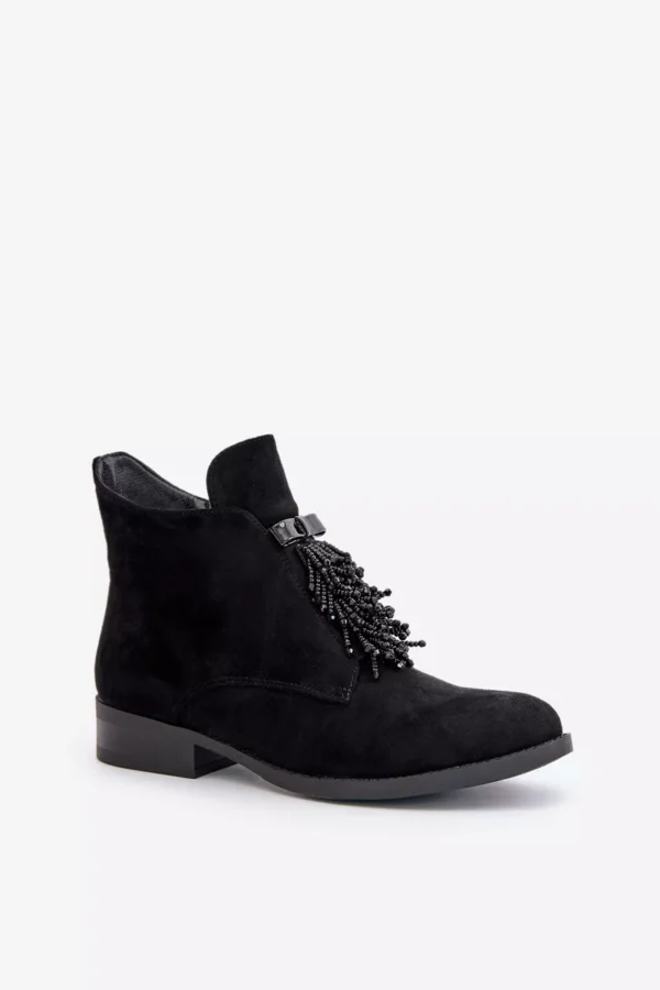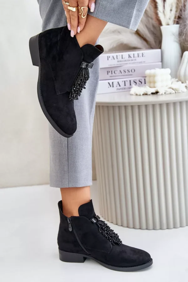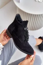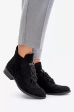 Sieviešu apavi zīmola S.Barski. Izgatavoti no videi draudzīga zamšāda. Plakans papēdis nodrošina stabilitāti katrā solī. Noapaļots purngals. Šī modeļa galvenā priekšrocība ir rotājums priekšpusē, kas piešķir tam unikālu šarmu. Šim modelim ir izolācija zābaku segas veidā. Izvēloties izmēru, skatieties izmēru tabulu.