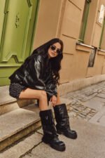 Sieviešu potītes zābaki, kas izgatavoti no augstas kvalitātes videi draudzīgas ādas, ir ideāla izvēle sievietēm, kas novērtē modernu dizainu un komfortu. Aizdare bez auklām padara tos viegli uzvelkamus un nodrošina perfektu piegulumu, bet masīvā platforma nodrošina stabilitāti un komfortu, piešķirot apaviem izteiksmīgu raksturu. Modelis izceļas ar iespaidīgo, slāņoto virsu un kabatām, kas piešķir visam unikālu un neparastu izskatu. Stilīgais griezums padara šos apavus par lielisku izvēli saskaņā ar jaunākajām modes tendencēm un piešķirs spēcīgu akcentu jūsu ikdienas pilsētas izskatam. Tie labi saderēs ar skinny džinsiem, īsām kleitām vai svārkiem. Izvēloties izmēru, lūdzu, skatieties izmēru tabulu. Izvēloties izmēru, lūdzu, skatieties izmēru tabulu.