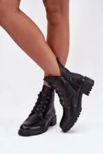 Siltināti sieviešu zābaki ar blokveida papēdi Vinceza 58609 Melni