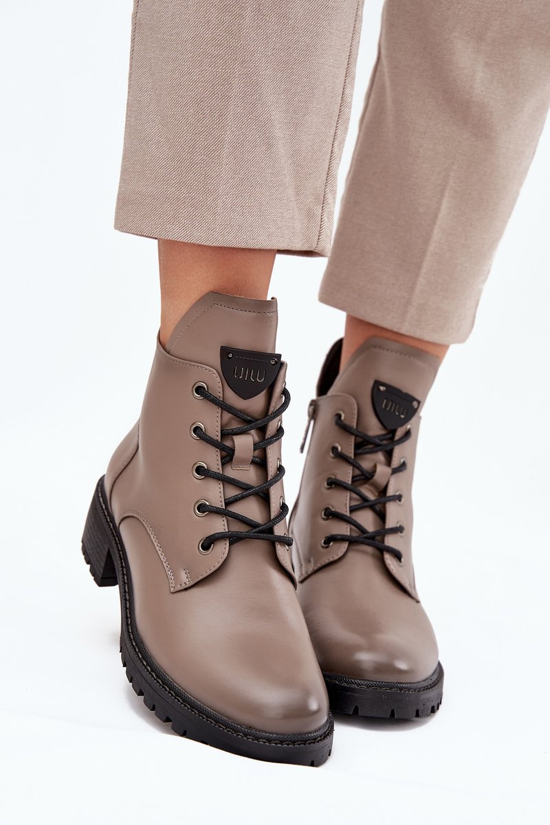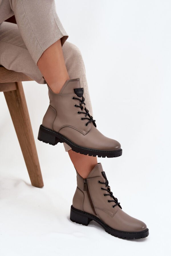 Siltināti sieviešu zābaki ar blokveida papēdi Vinceza 58609 pelēki