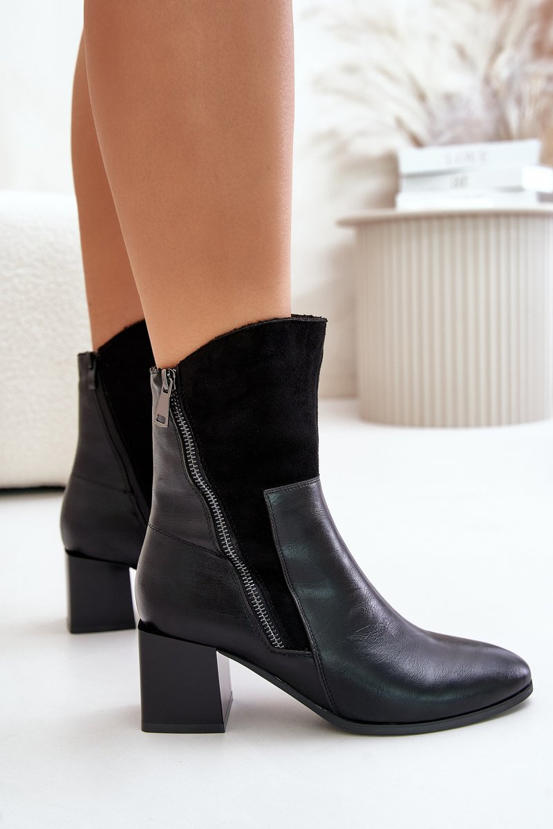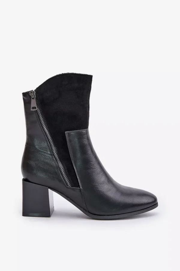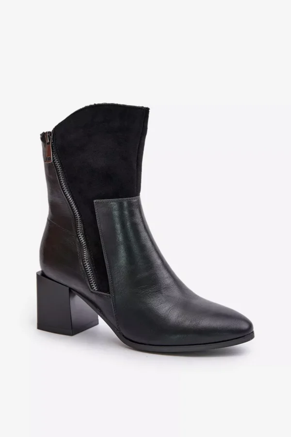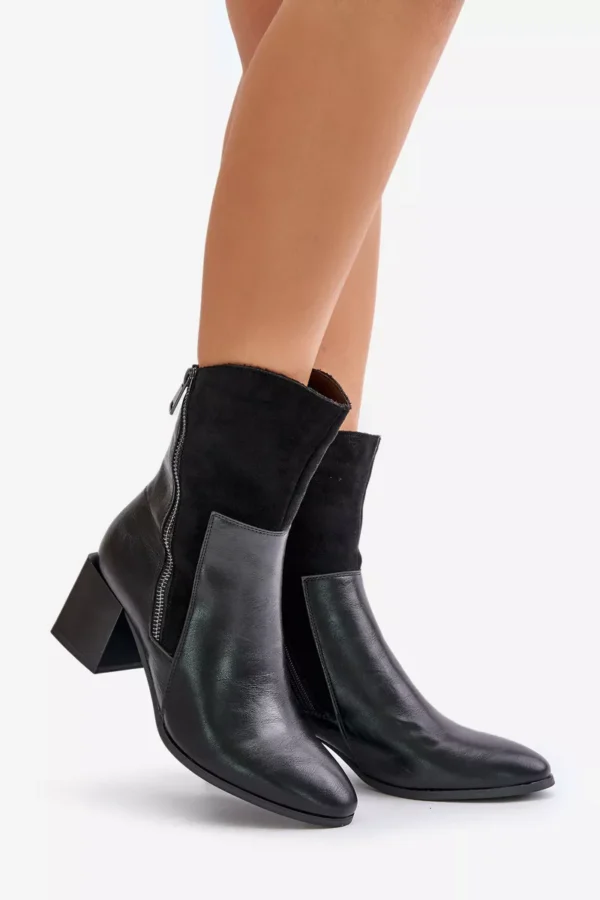 Sieviešu zābaki no videi draudzīgas ādas, ar stabilu blokveida papēdi. Aizdarāmi ar rāvējslēdzēju, ar papildu dekoratīvu rāvējslēdzēju, kas piešķir raksturīgu izskatu. Iekšpuse izolēta ar aitas vilnu, nodrošinot siltumu un komfortu vēsākās dienās. Ideāla izvēle sievietēm, kas novērtē stilu un komfortu. Izvēloties savu izmēru, lūdzu, izmantojiet izmēru tabulu.
