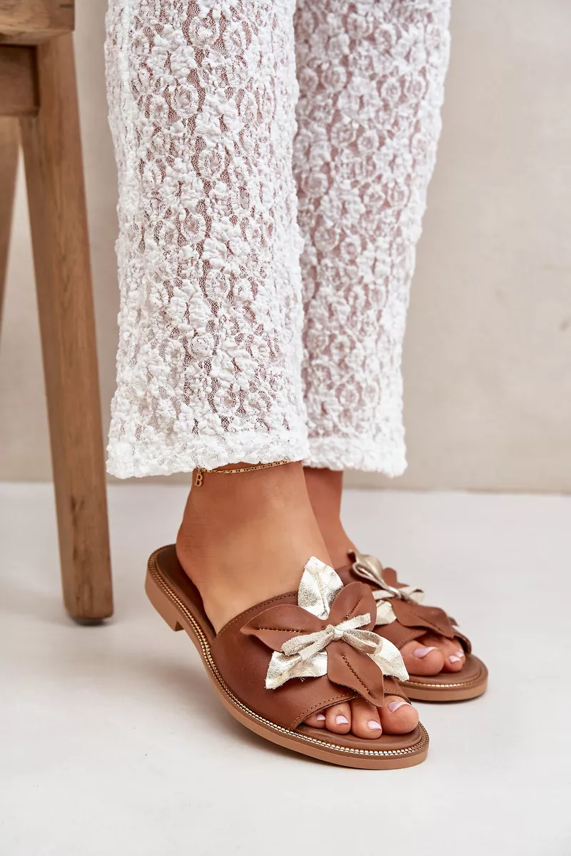 Slīdnes ar dekoratīvu dabīgo ādu Zazoo 3574/Z Camel