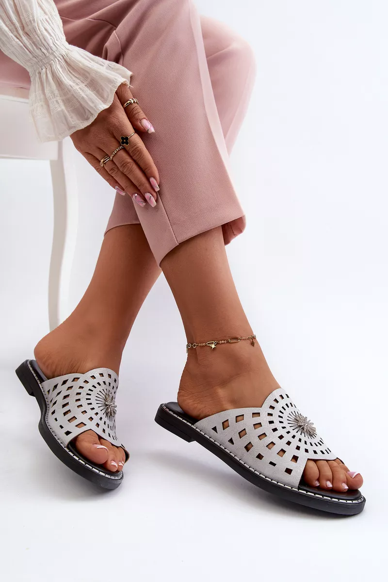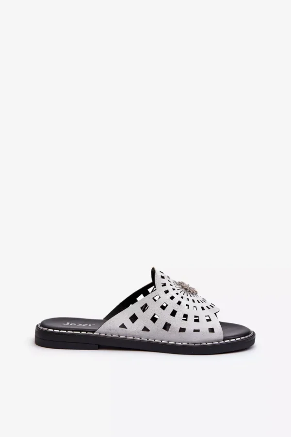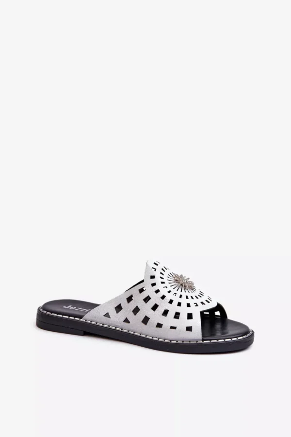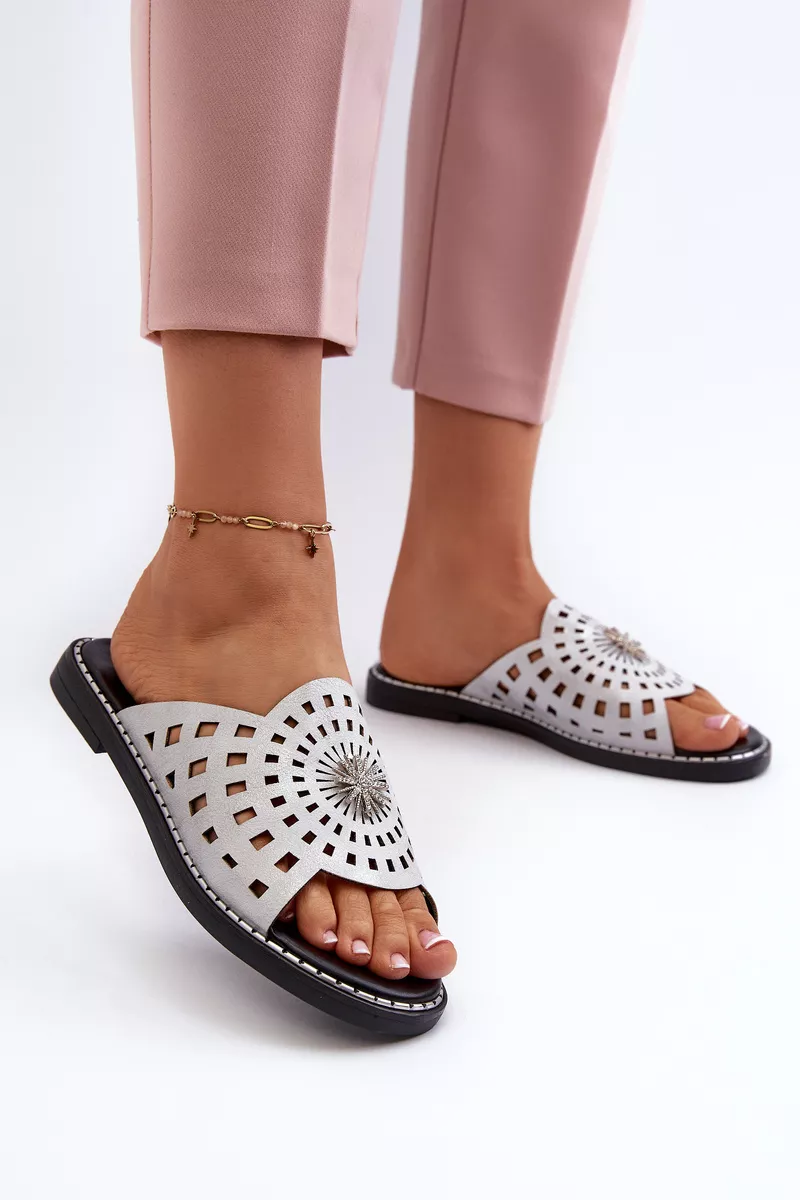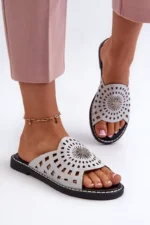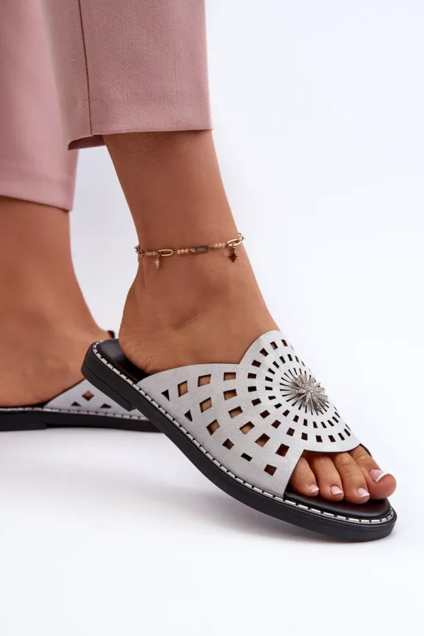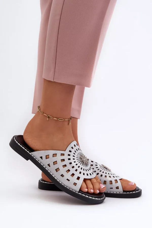 Eleganti sieviešu plakani kurpes ar atvērtu purngalu un rotājumiem – piedāvājums sievietēm, kas novērtē komfortu un stilu. Rotājumi piešķir tām īpašu šarmu, padarot tās ideālas gan ikdienas valkāšanai, gan vasaras izbraucieniem. Plakanais papēdis nodrošina ērtu valkāšanu ilgāku laiku. Tie noteikti jāiekļauj jūsu vasaras garderobē! Izvēloties izmēru, lūdzu, izmantojiet izmēru tabulu.