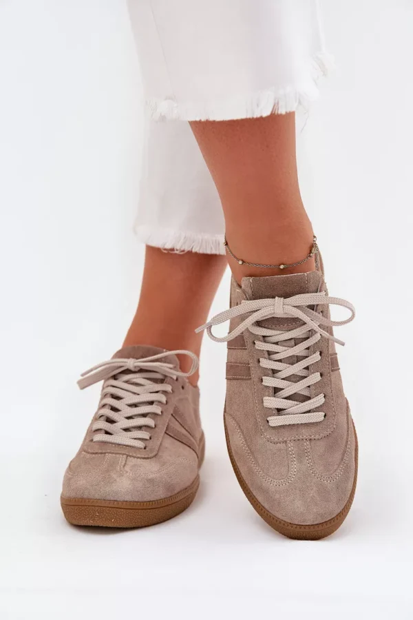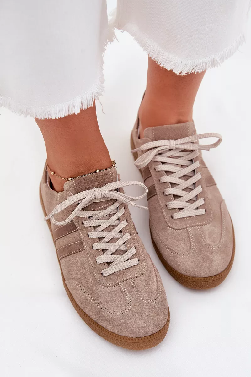 Stilīgi sieviešu sporta apavi no dabīgās zamšādas ir ideāls stila un komforta apvienojums. Šie zema profila sporta apavi ar auklām ir ideāli piemēroti gan ikdienas, gan elegantiem apģērbiem. Mīkstā zole nodrošina komfortu visas dienas garumā. Ideāli piemēroti pastaigām pa pilsētu, iepirkšanās vai tikšanās ar draugiem, tie ir moderns un praktisks papildinājums jebkurai garderobei. Izvēloties savu izmēru, lūdzu, izmantojiet izmēru tabulu.