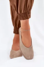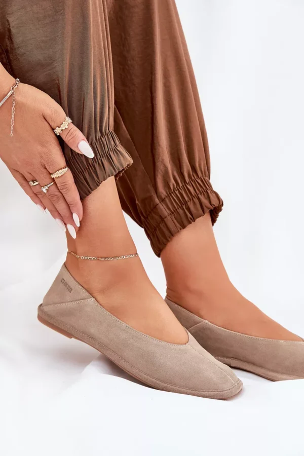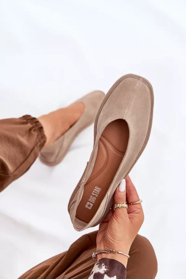Sieviešu balerīnu kurpes no Big Star, izgatavotas no dabiskas zamšādas, apvienojot eleganci ar komfortu. Pirksti ir maigi noapaļoti, nodrošinot komfortu visas dienas garumā. Mīkstā zole garantē papildu komfortu, padarot šīs balerīnu kurpes par ideālu izvēli ikdienas valkāšanai. Tās labi sader ar dažādiem stiliem, apvienojot vienkāršību ar smalku stilu. Izvēloties izmēru, skatieties izmēru tabulu.