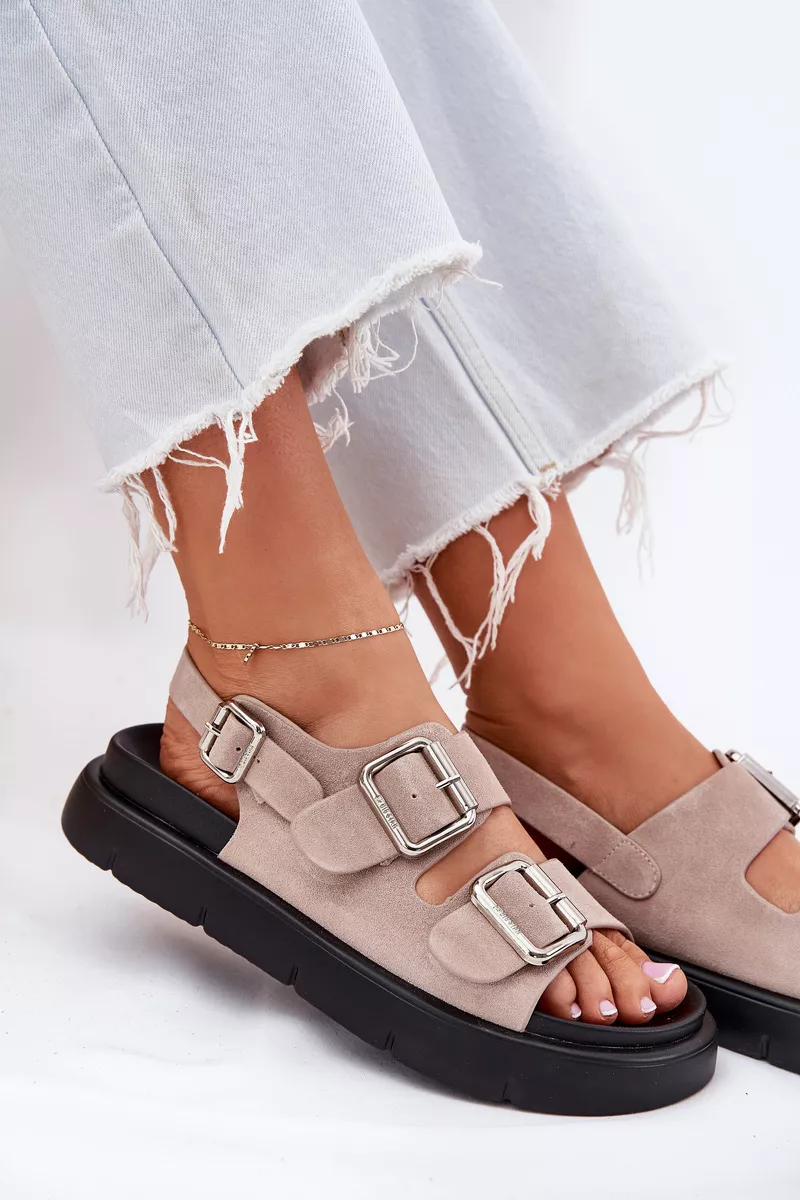 Big Star sieviešu sandales, izgatavotas no dabiskas zamšādas, ir eleganta izvēle siltajām dienām. Tās ir ar platformu, kas nodrošina komfortu un stabilitāti visas dienas garumā. Šim modelim ir divas regulējamas siksnas ar sprādzēm priekšā, kas nodrošina perfektu pielāgošanos, un aizmugurējā siksna papildu stabilitātei. Šie stilīgie sandales būs lielisks papildinājums jūsu vasaras garderobei, apvienojot funkcionalitāti ar modernu izskatu. Izvēloties savu izmēru, lūdzu, izmantojiet izmēru tabulu.