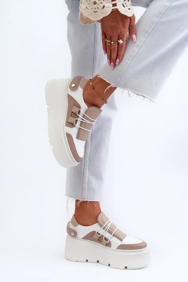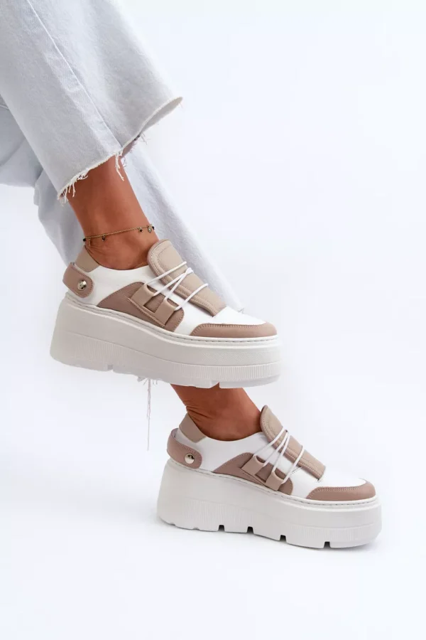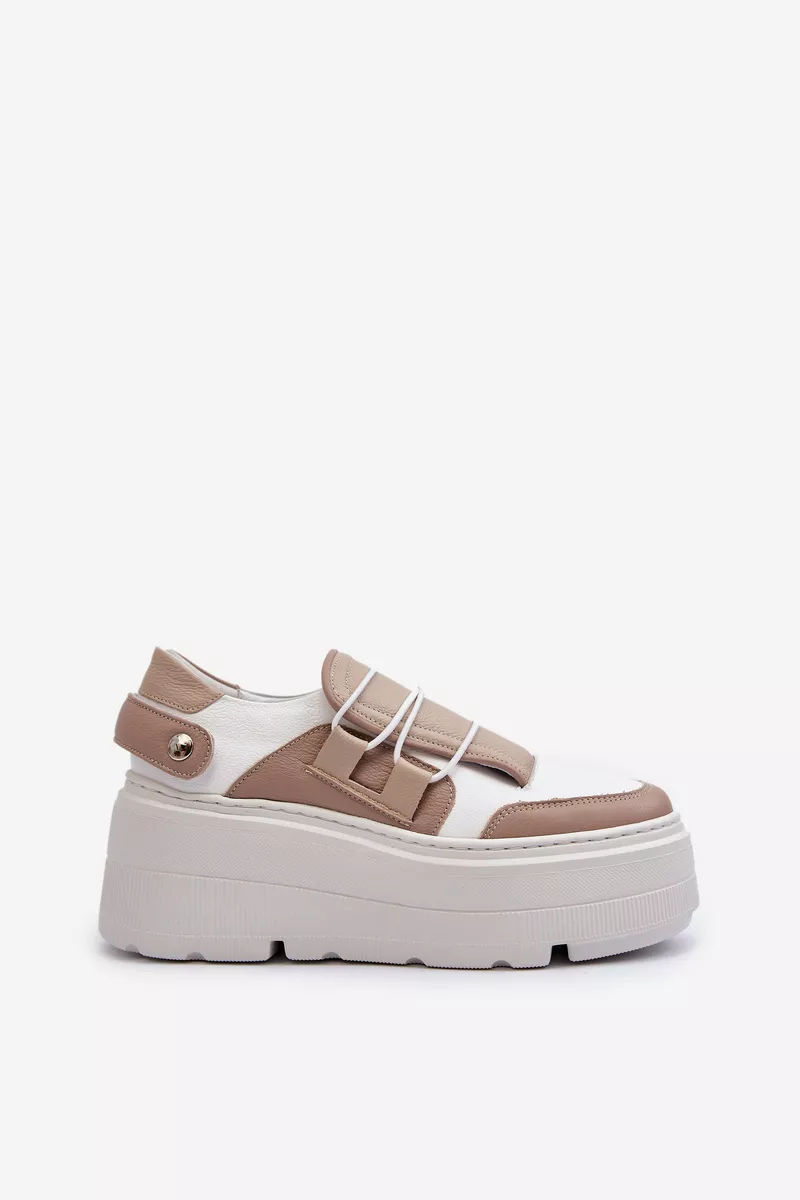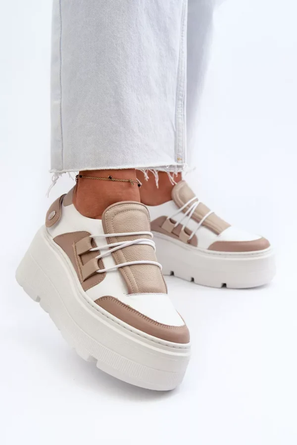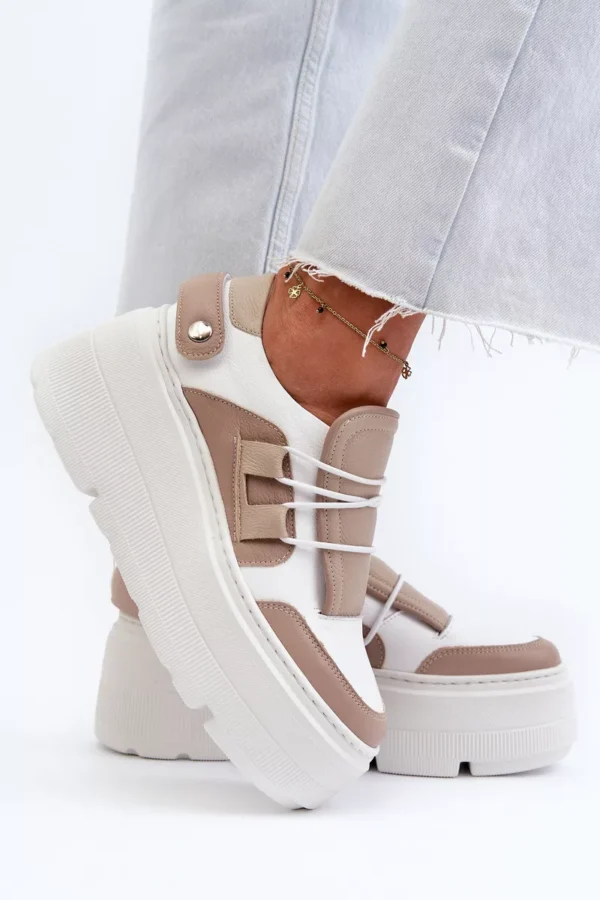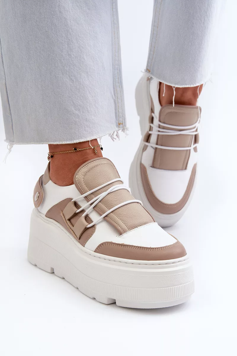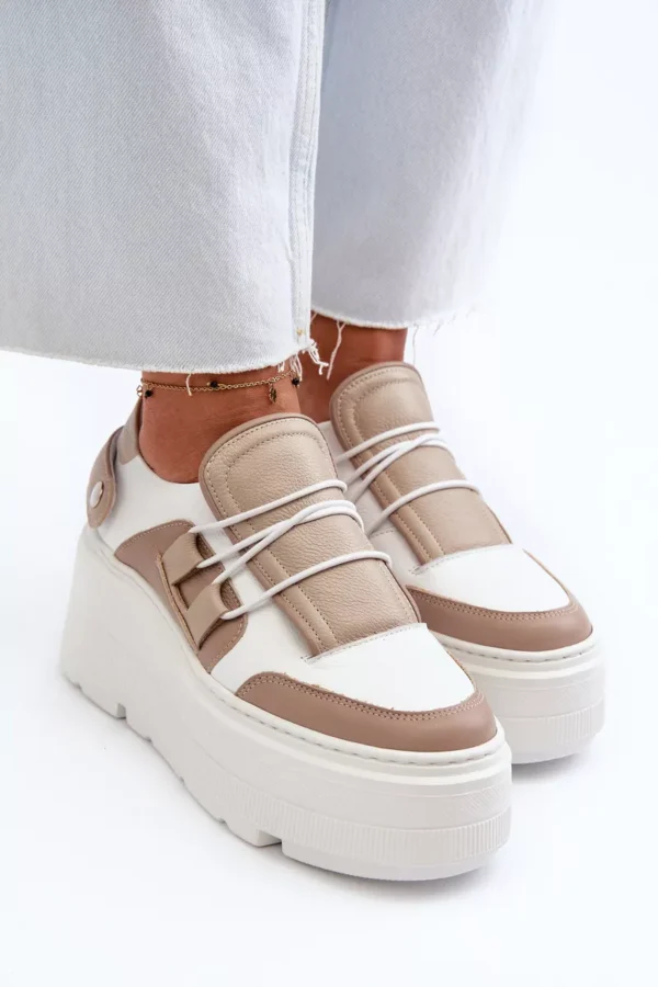 Sieviešu sporta apavi no dabīgās ādas. Platforma padara tos īpaši stilīgus. Ādas zole nodrošina komfortu lietošanas laikā. Noapaļoti purngali. Ideāli piemēroti ikdienas stilam! Izvēloties izmēru, skatieties izmēru tabulu.