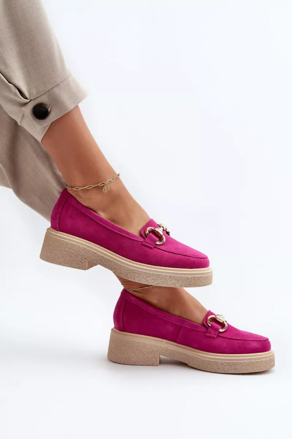 Šie elegantie sieviešu mokasīni no dabiskas zamšādas ir ne tikai izsmalcināti stilīgi, bet arī ārkārtīgi ērti. To priekšpuse ir rotāta ar zelta rotājumiem, kas piešķir tiem greznības un elegances pieskārienu. Ar platformu un plakanu papēdi. Konturēta zole nodrošina komfortu lietošanas laikā. Ļoti moderns dizains, kas piemērots daudziem stiliem! Izvēloties izmēru, lūdzu, skatieties izmēru tabulu.