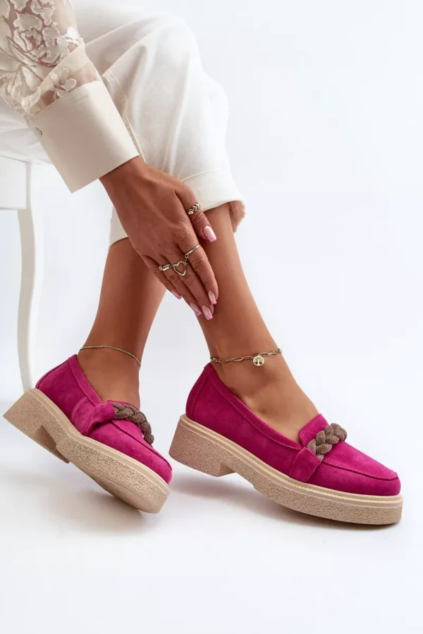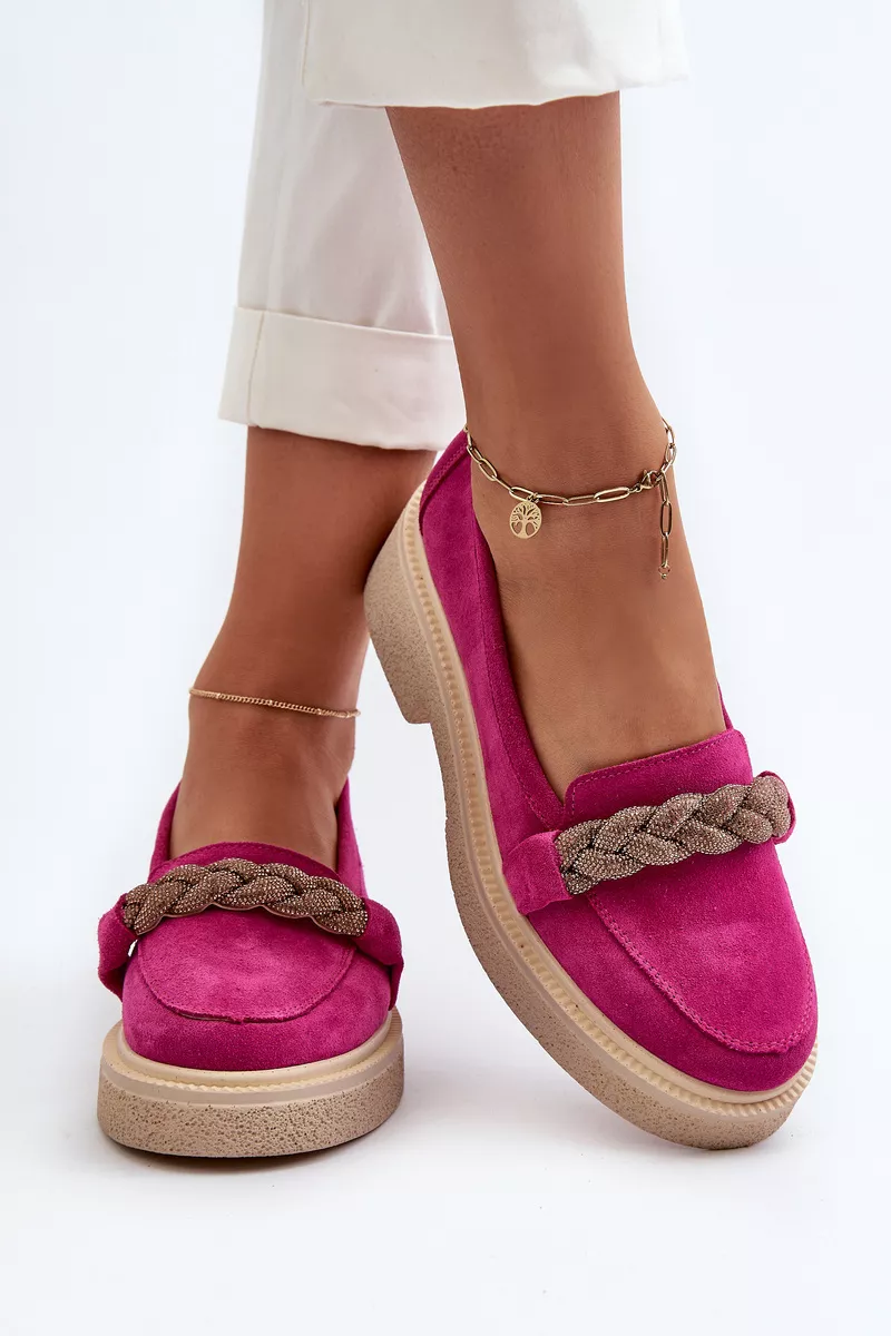 Burvīgi sieviešu mokasīni no dabīgās zamšādas. Tie ir ar plakanu papēdi un nelielu platformu, kas nodrošina stabilitāti un komfortu valkājot. Noapaļotie purngali piešķir tiem smalku šarmu. Profilēta zole garantē komfortu lietošanas laikā. Mazie cirkonija akmentiņi uz siksnas priekšpuses piešķir papildu eleganci. Tie noteikti ir jāiekļauj tavā pavasara garderobē! Izvēloties izmēru, lūdzu, skaties izmēru tabulu.