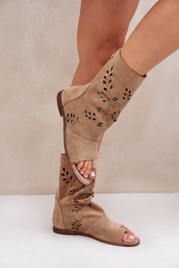 Šie unikālie plakanie sandales ir elegances un komforta apvienojums. Izgatavoti no augstas kvalitātes dabīgās ādas, tie nodrošina izturību un komfortu. To augšējā daļa, kas tiek aizdarīta ar rāvējslēdzēju, ir dekorēta ar mežģīņu rakstu, piešķirot smalkumu un stilu. Tās ir ideāli piemērotas gan ikdienas valkāšanai, gan īpašiem gadījumiem, piešķirot jūsu stilam šarmu. Lūdzu, izvēloties izmēru, skatieties izmēru tabulu.
