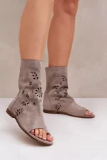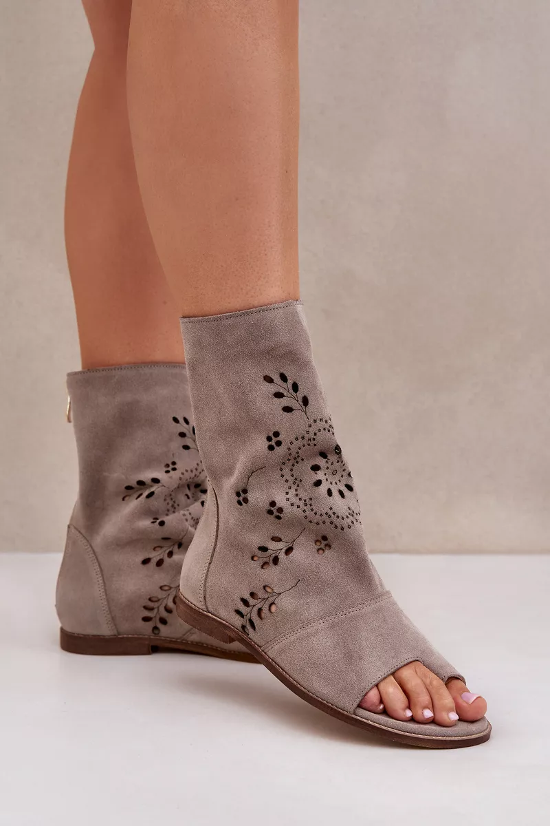 Šie unikālie plakanie sandales ir elegances un komforta apvienojums. Izgatavoti no augstas kvalitātes dabīgās ādas, tie nodrošina izturību un komfortu. To augšējā daļa, kas tiek aizdarīta ar rāvējslēdzēju, ir dekorēta ar mežģīņu rakstu, piešķirot smalkumu un stilu. Tās ir ideāli piemērotas gan ikdienas valkāšanai, gan īpašiem gadījumiem, piešķirot jūsu stilam šarmu. Lūdzu, izvēloties savu izmēru, skatieties izmēru tabulu.
