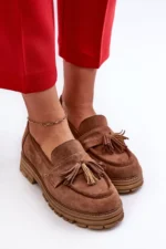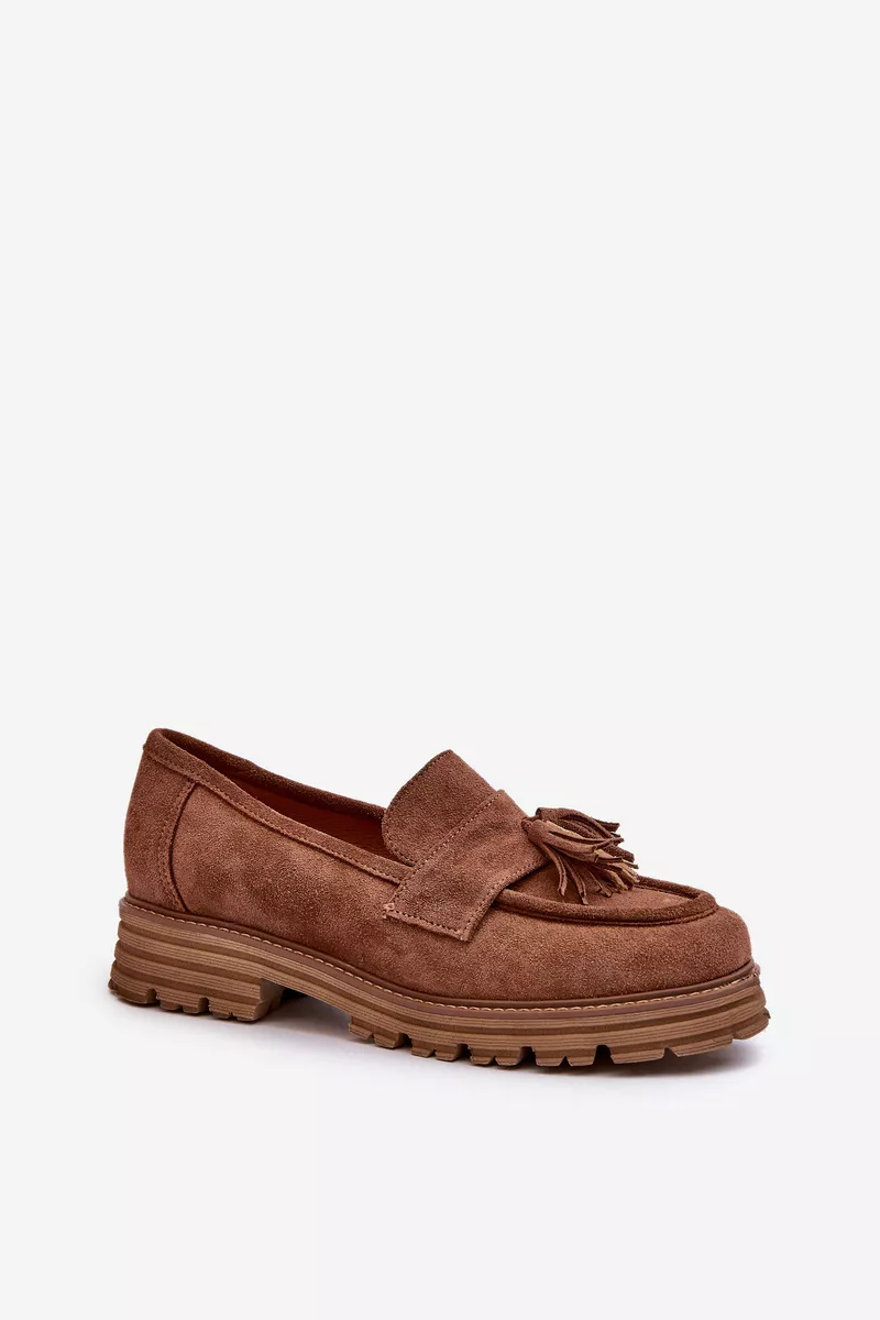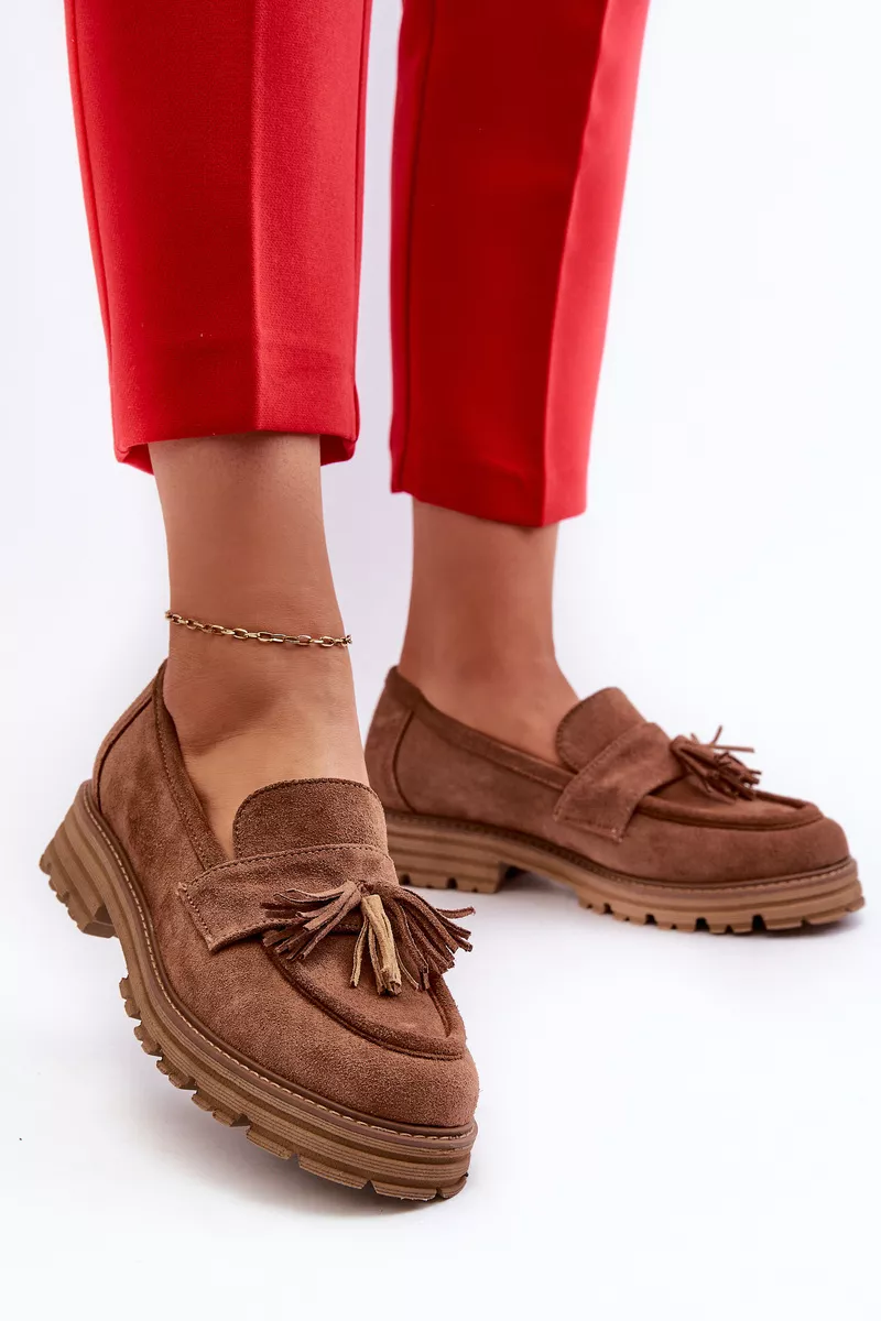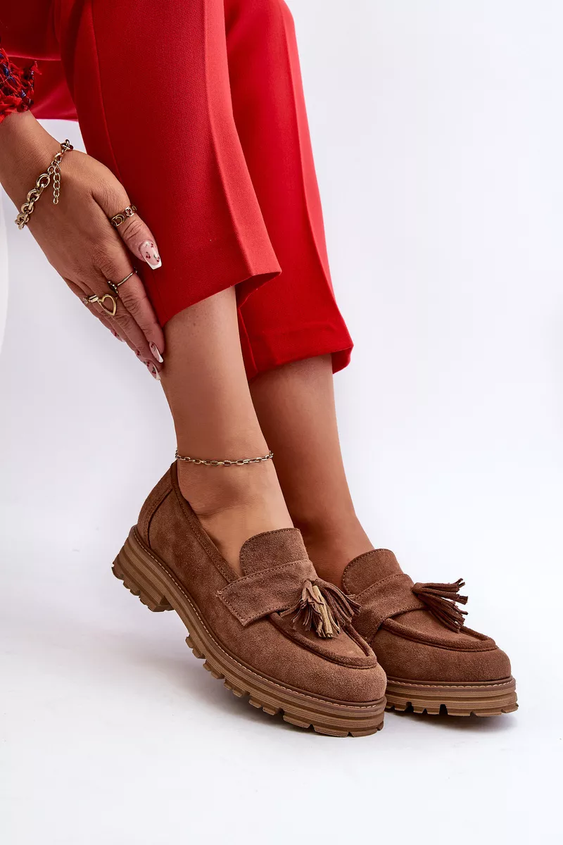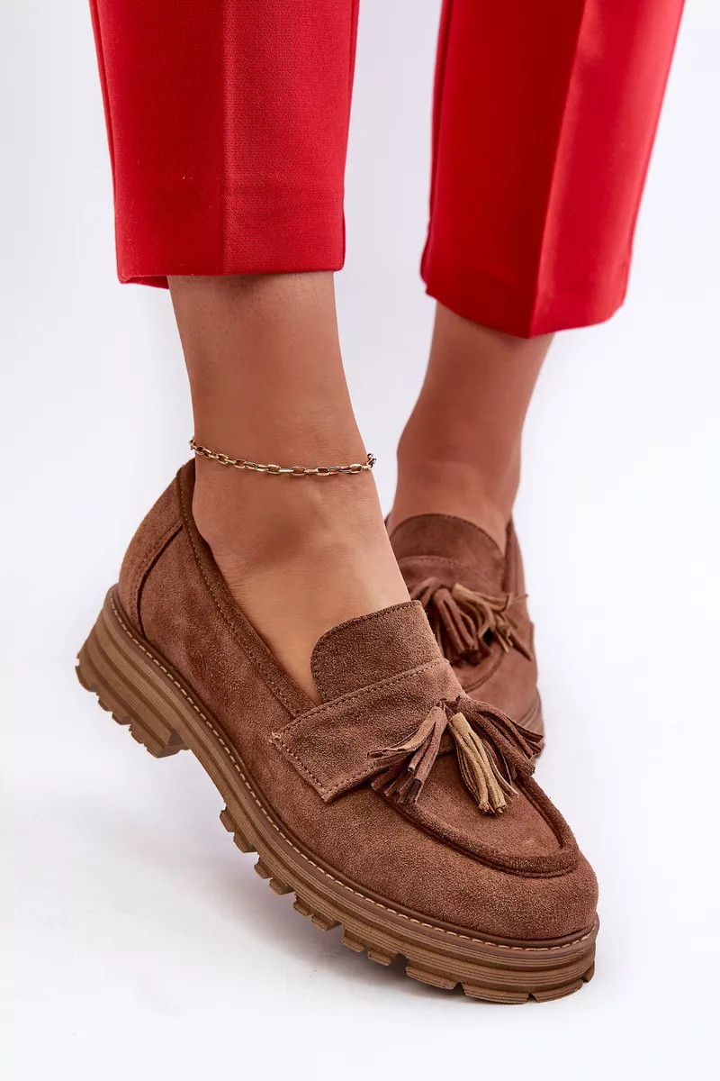 Zazoo 3469 Zīda sieviešu mokasīni ar bārkstīm, brūni