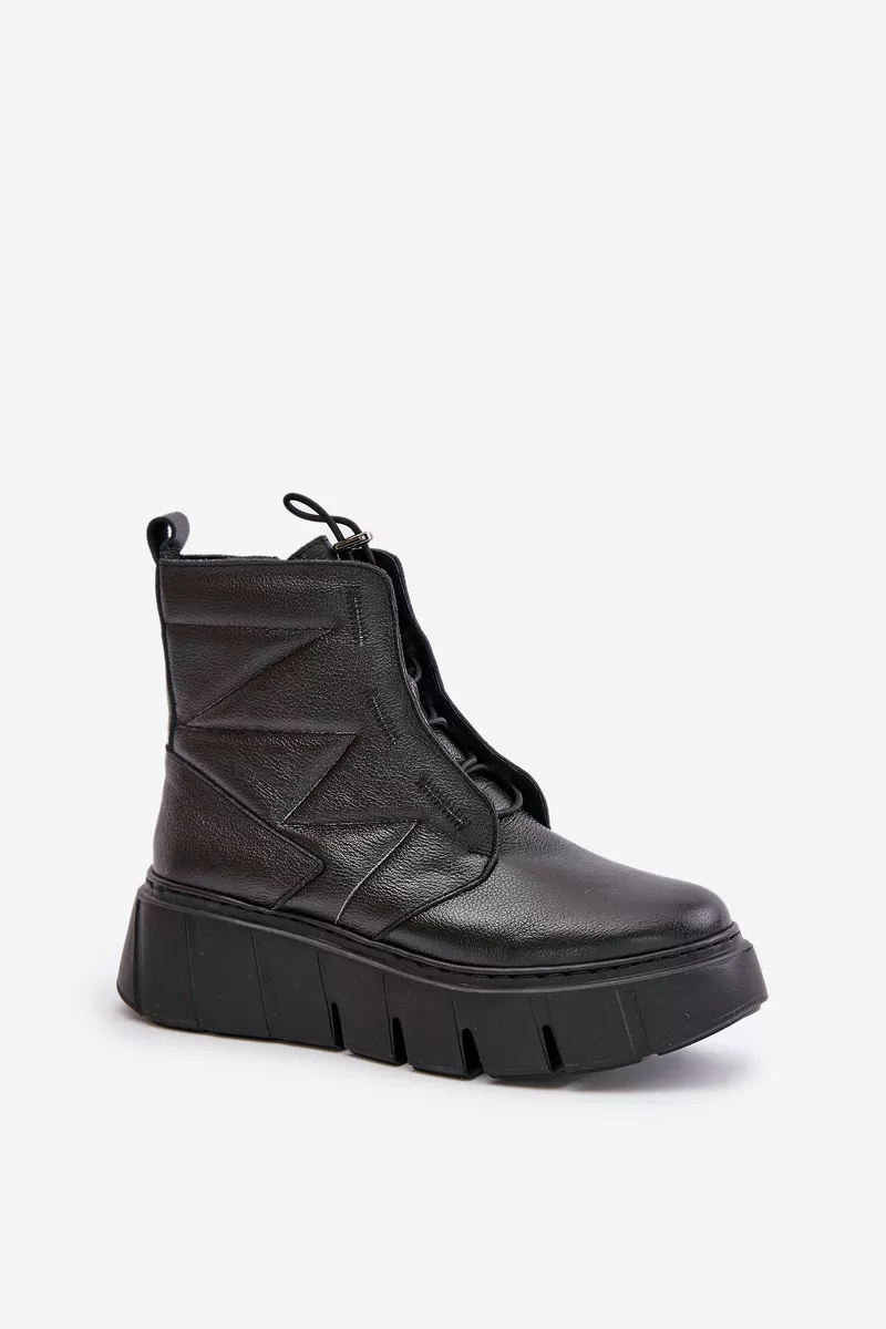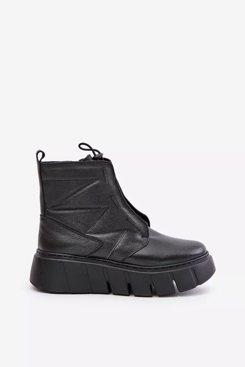 Zazoo 60472 ādas potītes zābaki uz platformas un papēža melnā krāsā