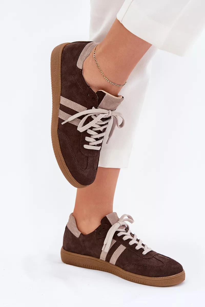 Stilīgi sieviešu sporta apavi no dabīgās zamšādas ir ideāls stila un komforta apvienojums. Šie zema profila sporta apavi ar auklām ir ideāli piemēroti gan ikdienas, gan elegantiem apģērbiem. Mīkstā zole nodrošina komfortu visas dienas garumā. Ideāli piemēroti pastaigām pa pilsētu, iepirkšanās vai tikšanās ar draugiem, tie ir moderns un praktisks papildinājums jebkurai garderobei. Izvēloties savu izmēru, lūdzu, izmantojiet izmēru tabulu.