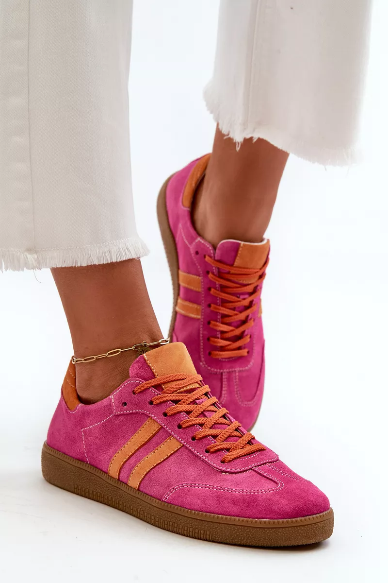 Stilīgi sieviešu sporta apavi no dabīgās zamšādas ir ideāls stila un komforta apvienojums. Šie zema profila sporta apavi ar auklām ir ideāli piemēroti gan ikdienas, gan elegantiem apģērbiem. Mīkstā zole nodrošina komfortu visas dienas garumā. Ideāli piemēroti pastaigām pa pilsētu, iepirkšanās vai tikšanās ar draugiem, tie ir moderns un praktisks papildinājums jebkurai garderobei. Izvēloties savu izmēru, lūdzu, izmantojiet izmēru tabulu.