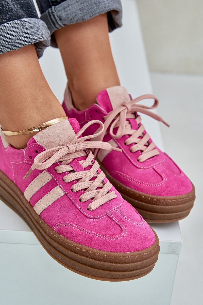 Stilīgi sieviešu sporta apavi, kas izgatavoti no augstākās kvalitātes dabīgā zamšāda, ir ideāla izvēle jebkurai sievietei, kas novērtē gan komfortu, gan modernu izskatu. Šie unikālie apavi ir izgatavoti uz stingras, bet vieglas platformas, kas piešķir papildu augstumu un izsmalcina siluetu. Šie sporta apavi labi sader ar gan ikdienas apģērbu, gan elegantiem tērpiem, padarot tos par universālu papildinājumu jebkurai garderobei. Lūdzu, izvēloties savu izmēru, skatieties izmēru tabulu.