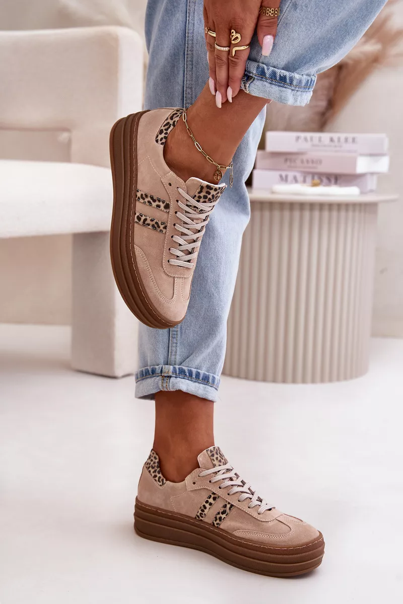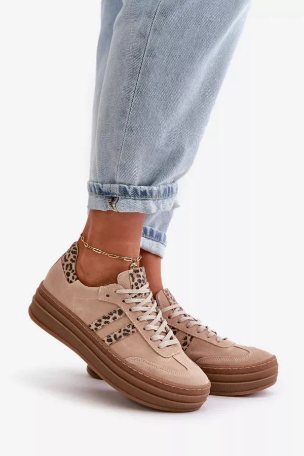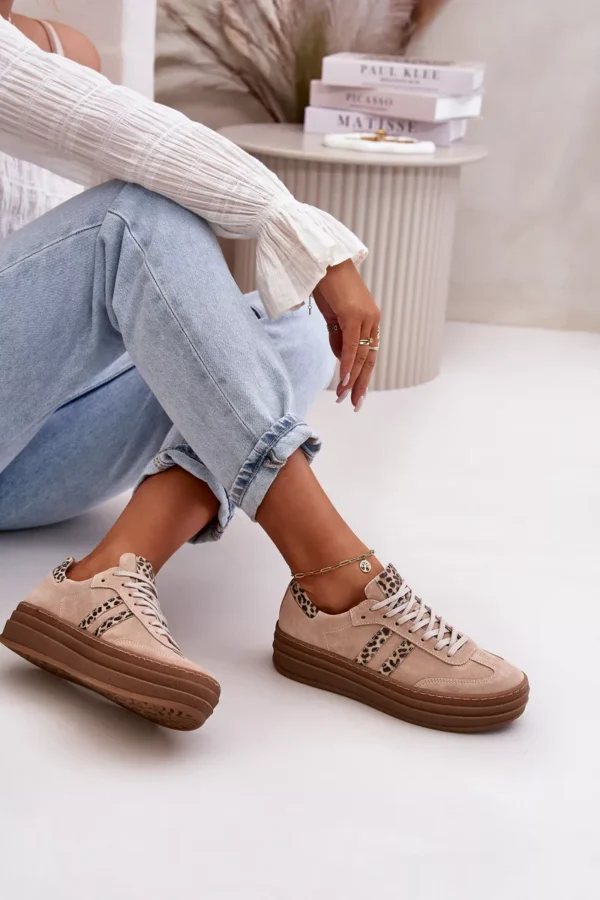 Stilīgi sieviešu sporta apavi, kas izgatavoti no augstākās kvalitātes dabīgā zamšāda, ir ideāla izvēle jebkurai sievietei, kas novērtē gan komfortu, gan modernu izskatu. Šie unikālie apavi ir izgatavoti uz stingras, bet vieglas platformas, kas piešķir papildu augstumu un izsmalcina siluetu. Šie sporta apavi labi sader ar gan ikdienas apģērbu, gan elegantiem tērpiem, padarot tos par universālu papildinājumu jebkurai garderobei. Lūdzu, izvēloties savu izmēru, skatieties izmēru tabulu.