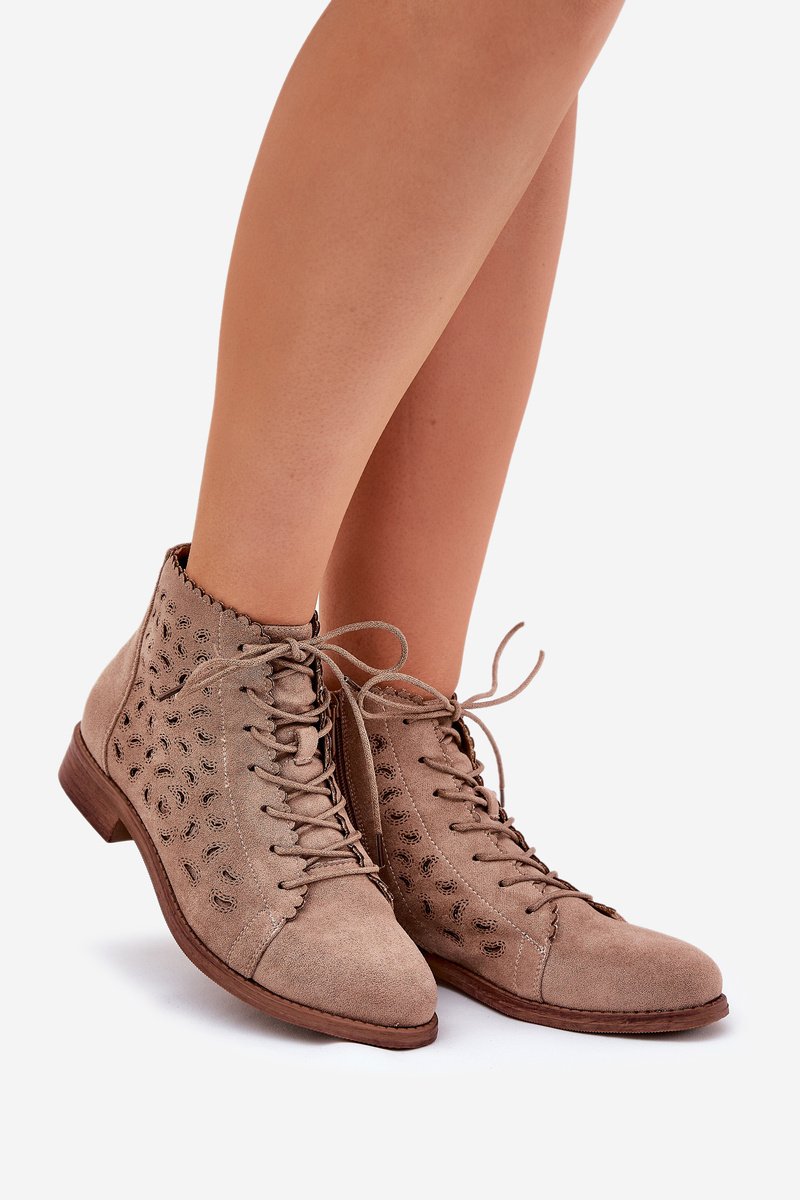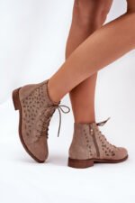 Sieviešu potītes zābaki no ekoloģiskā zamšāda ir stilīga izvēle vēsākām dienām. Zems potītes augstums, kas rotāts ar atvērtu rakstu, piešķir tiem vieglumu. Ar auklām un rāvējslēdzēju tos ir viegli uzvilkt un pielāgot savām kājām. Šie puszābaki ir lieliska izvēle ikdienas stilam, apvienojot funkcionalitāti ar modernu izskatu. Izvēloties savu izmēru, lūdzu, izmantojiet izmēru tabulu.