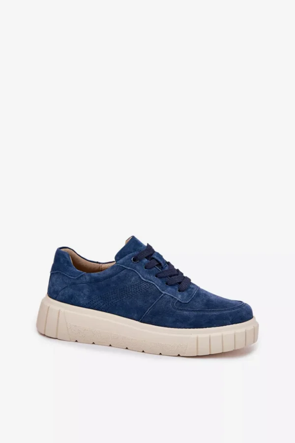 Sieviešu sporta kurpes no dabiskas zamšādas ir stila un komforta apvienojums. Platformas pamatne nodrošina papildu augstumu un stabilitāti visas dienas garumā. Āda un mīksta iekšējā zole nodrošina kāju komfortu, bet šo apavu moderns dizains ļauj tos perfekti saskaņot ar dažādiem stiliem. Ideāli piemēroti ikdienas izskatam. Izvēloties izmēru, skatieties izmēru tabulu.